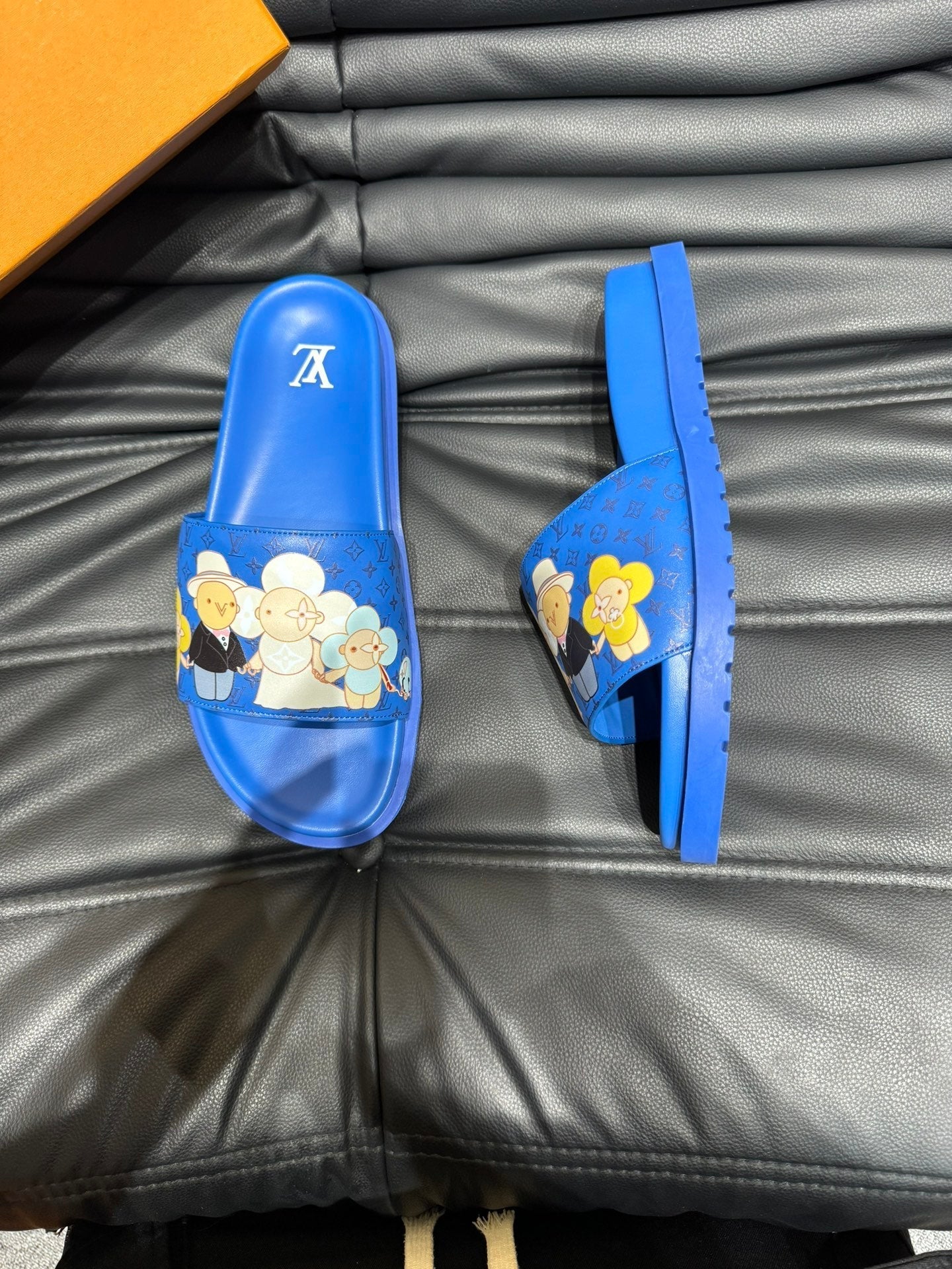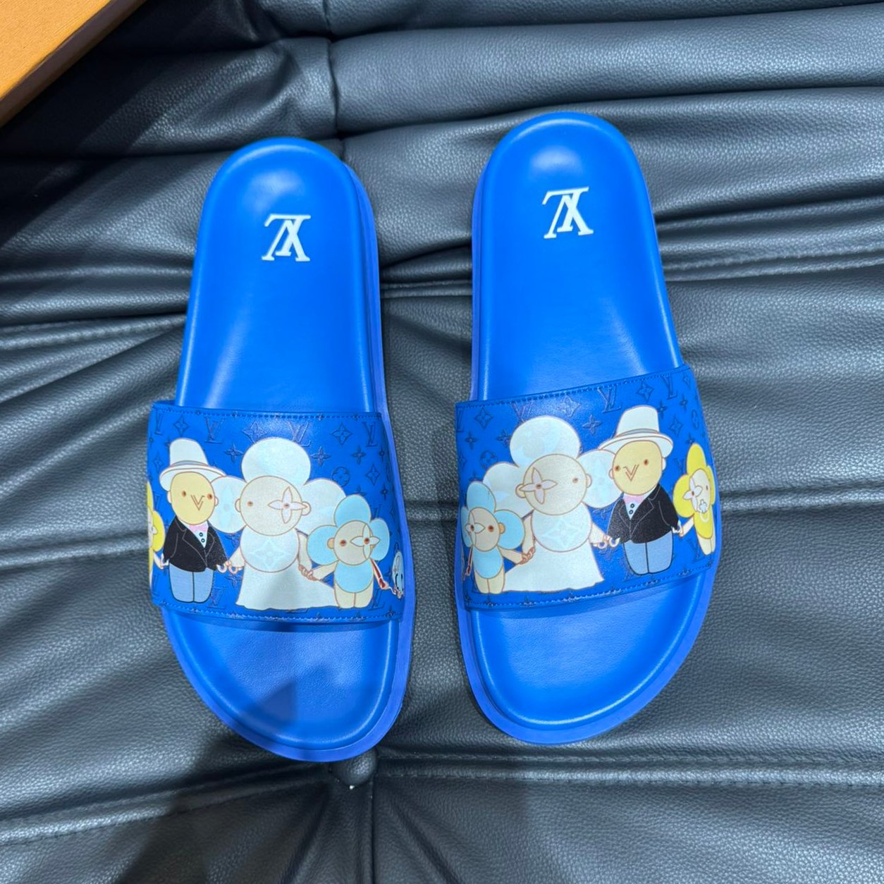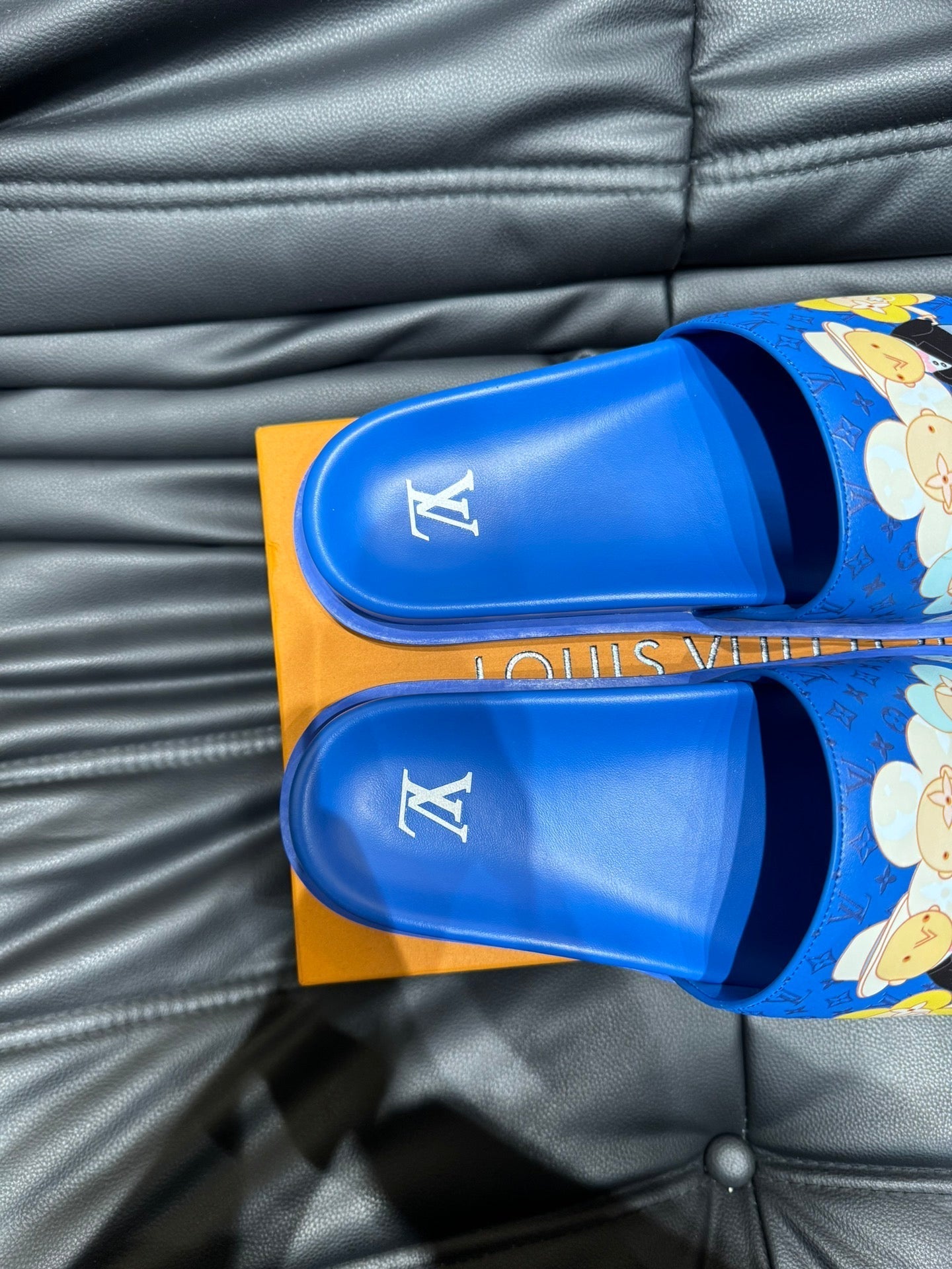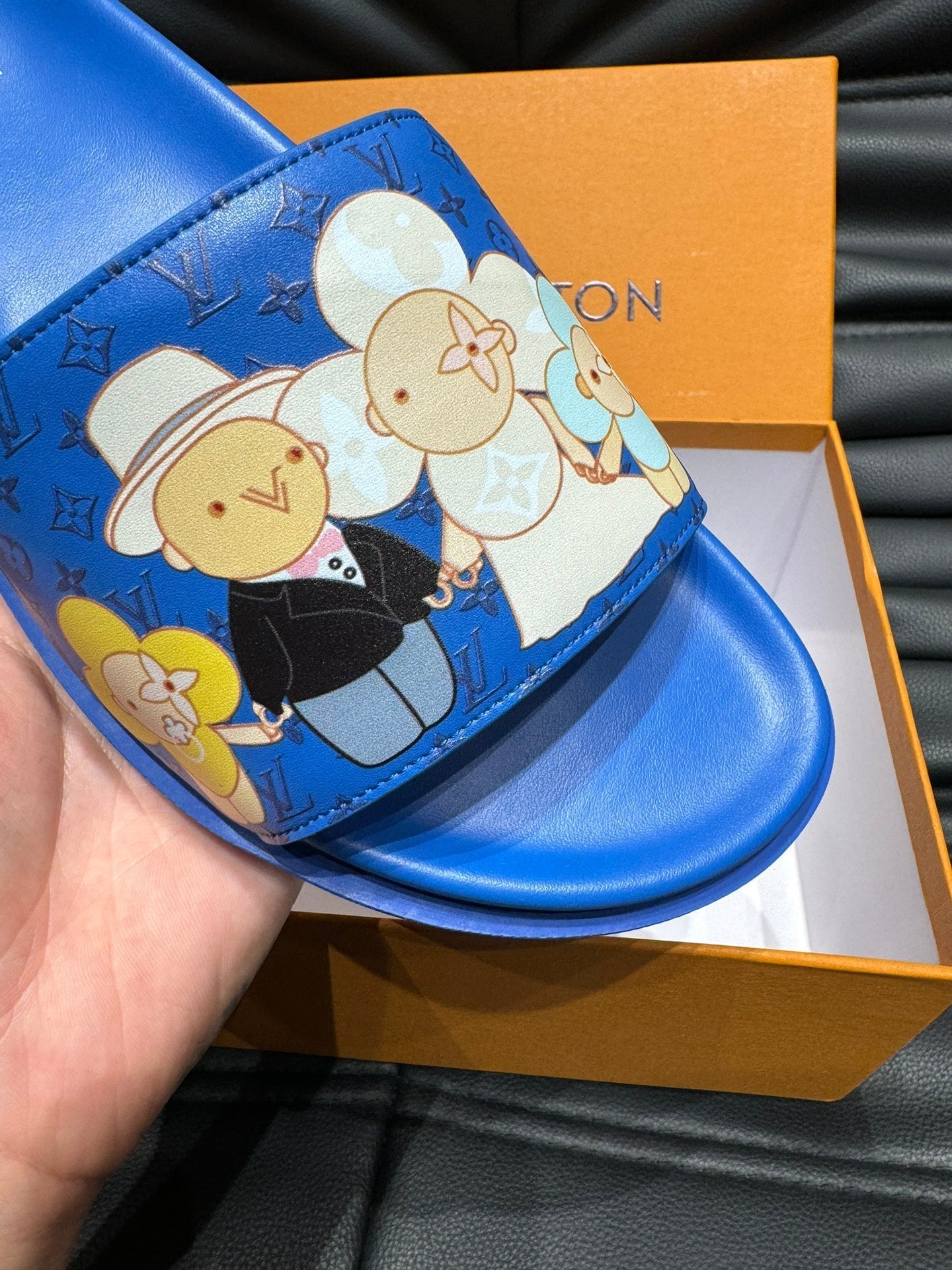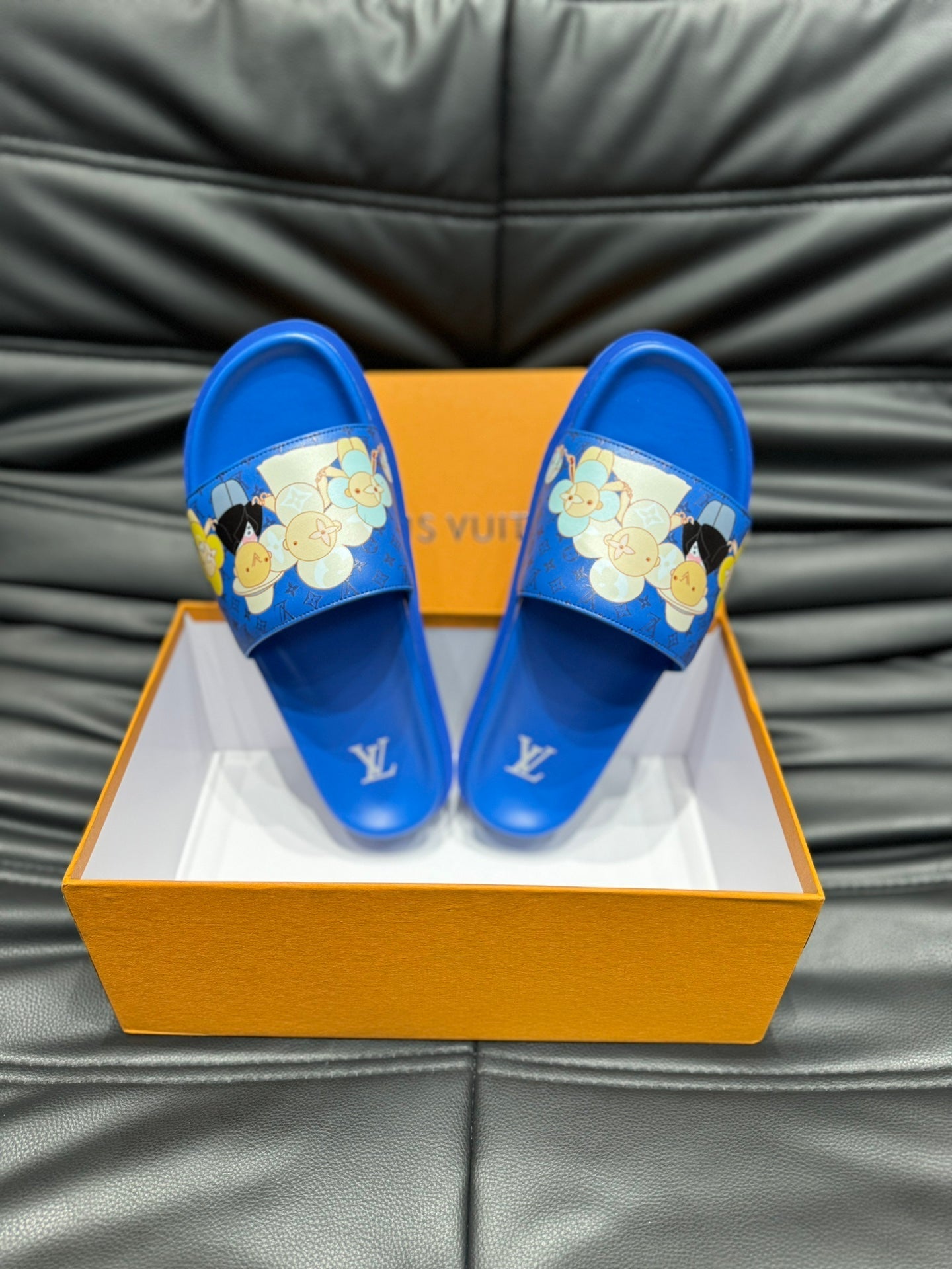 LV SLIPPERS IN COBALT BLUE MONOGRAM CALFSKIN