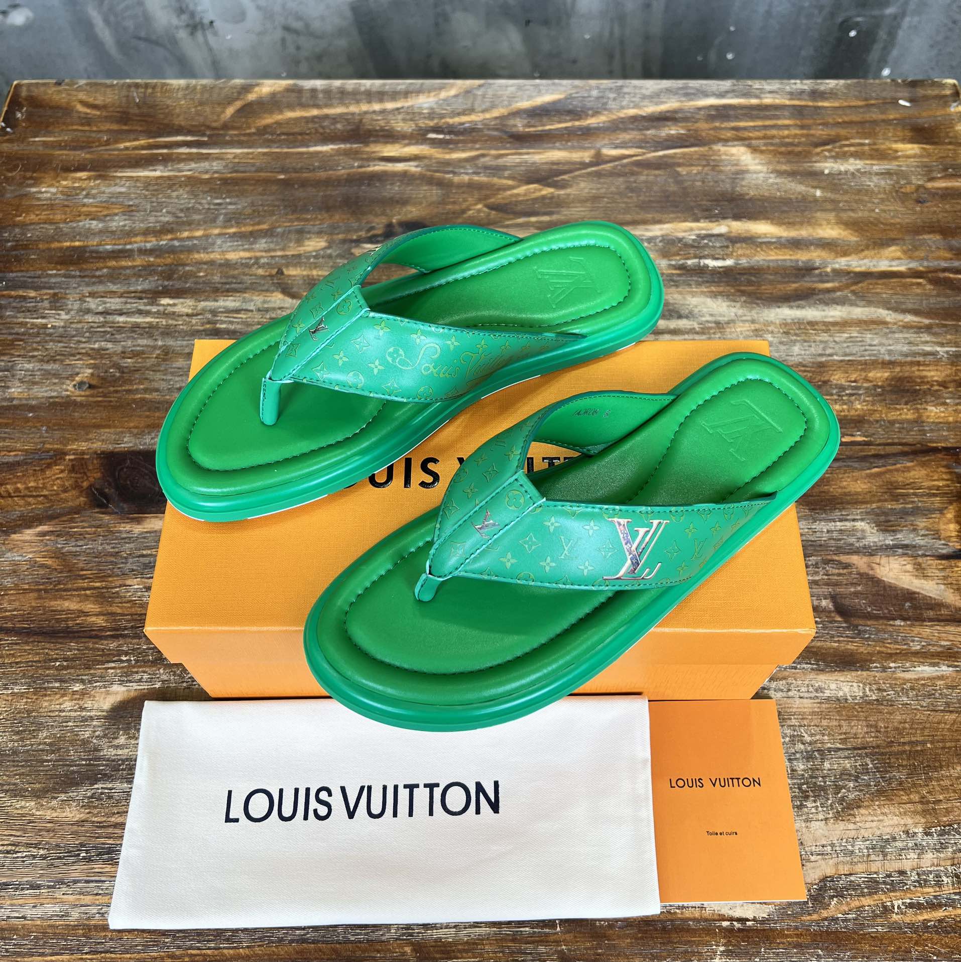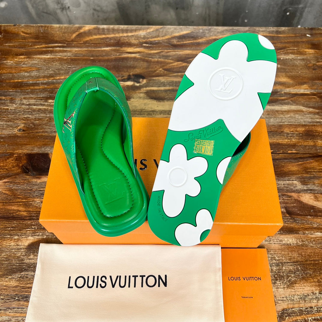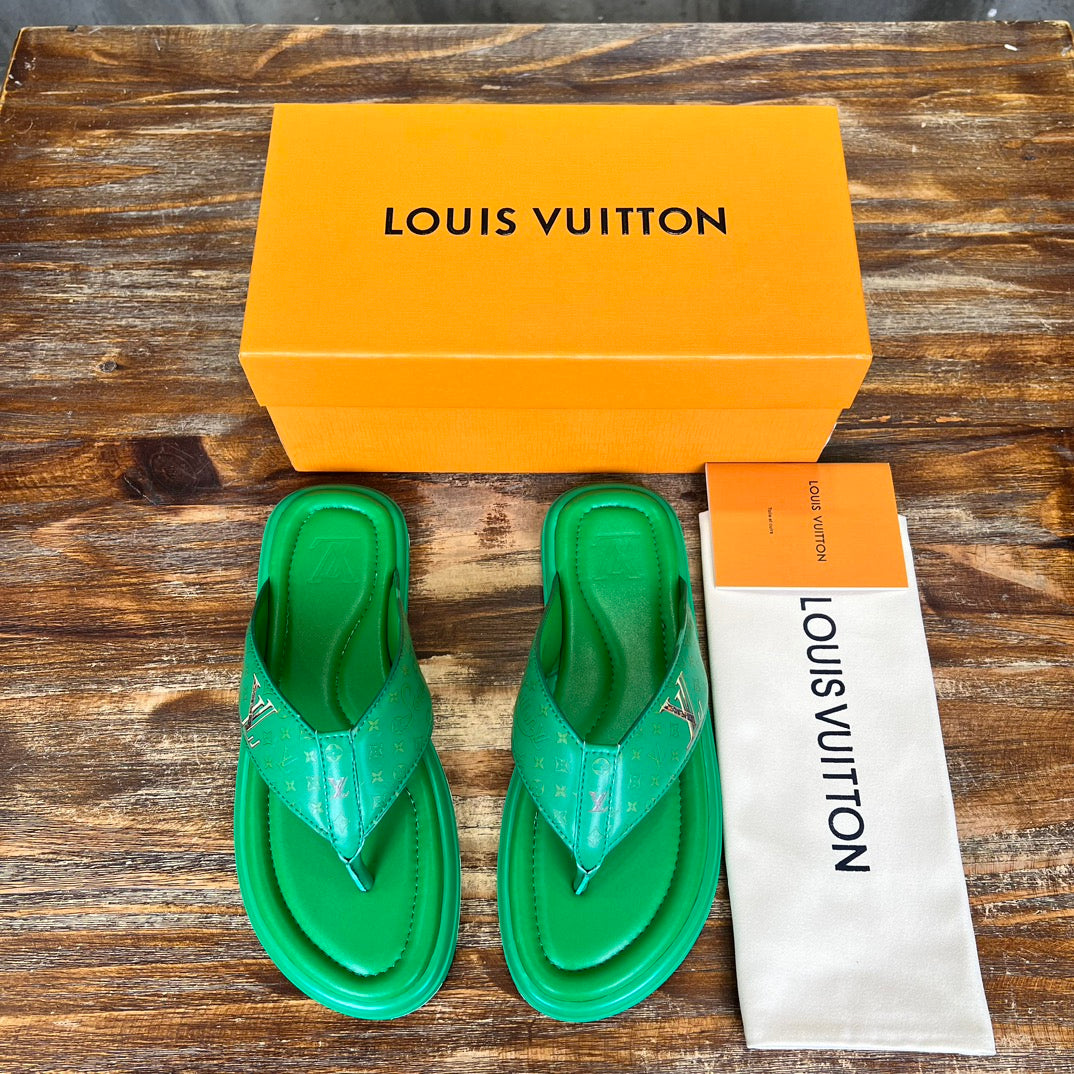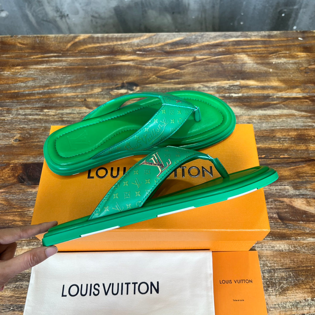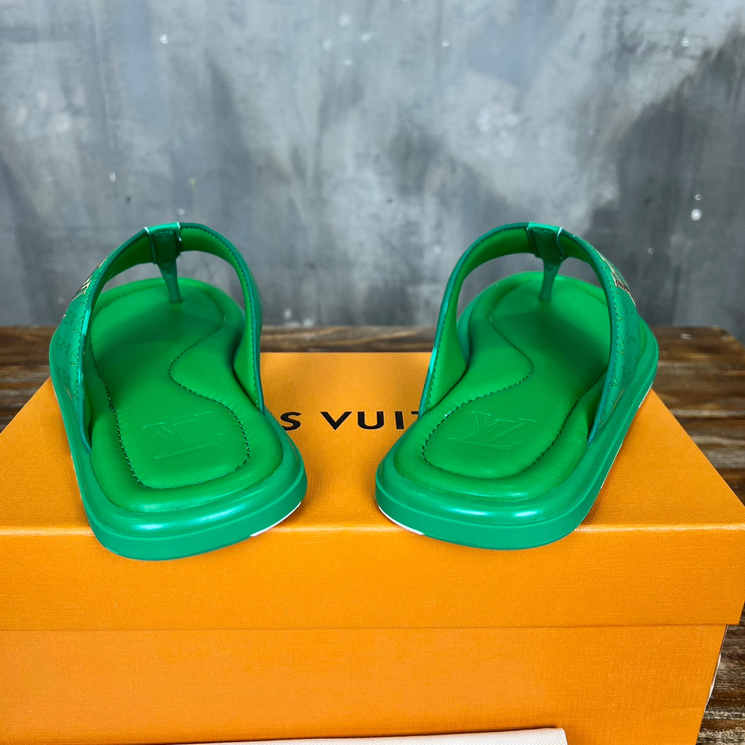 LV THONG SLIPPER IN SHAMROCK GREEN MONOGRAM CALFSKIN