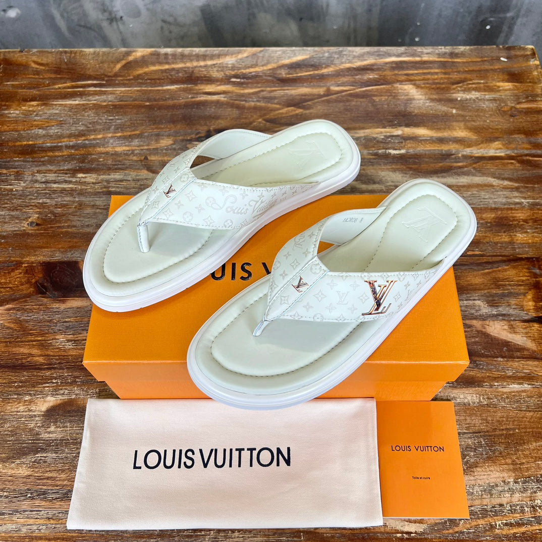 LV THONG SLIPPER IN WHITE MONOGRAM CALFSKIN
