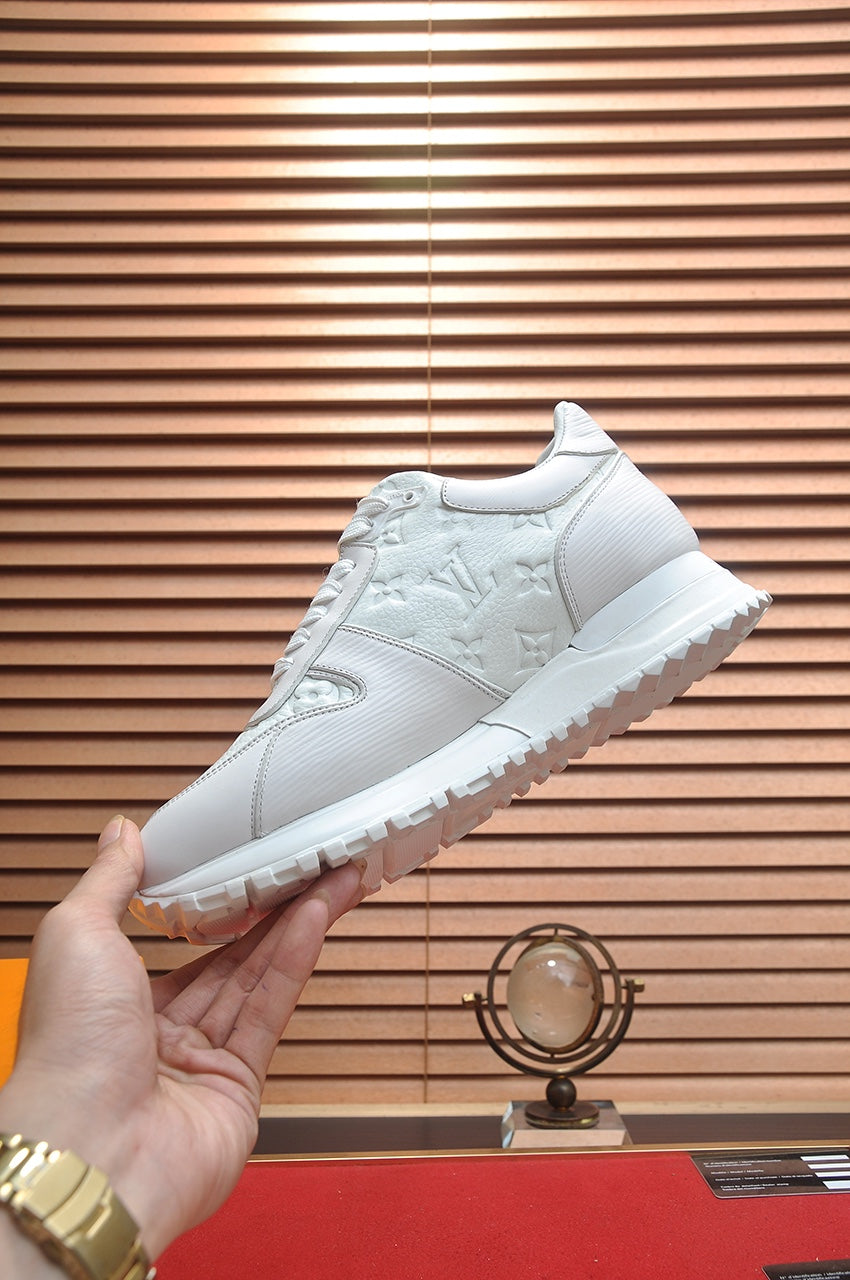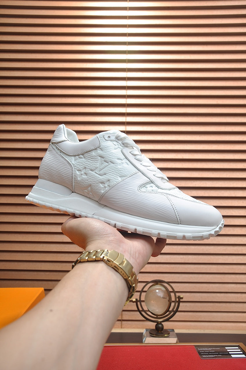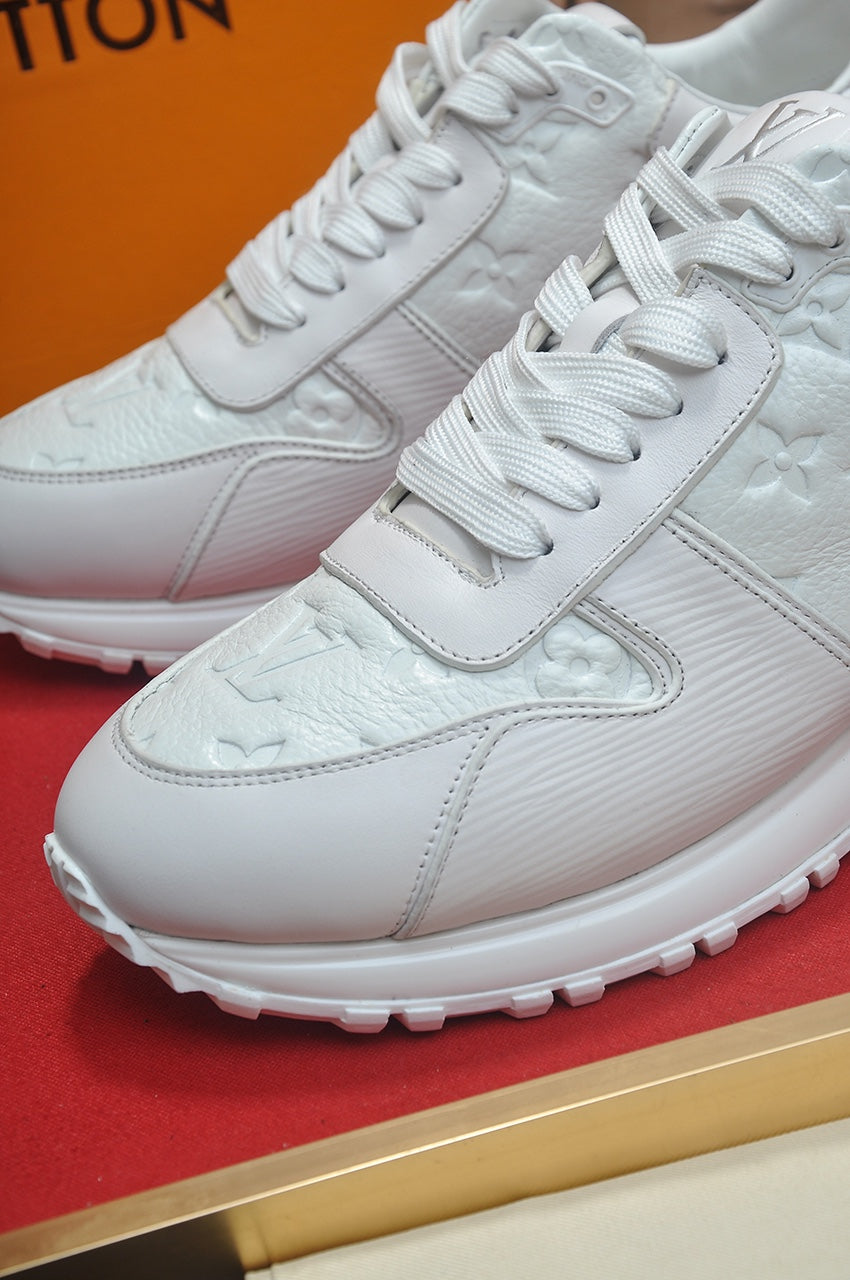 LV TRAINER SHOES IN WHITE EMBOSSED LAMBSKIN