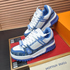 LV TRAINER SNEAKER BLUE MONOGRAM DENIM AND WHITE CALFSKIN