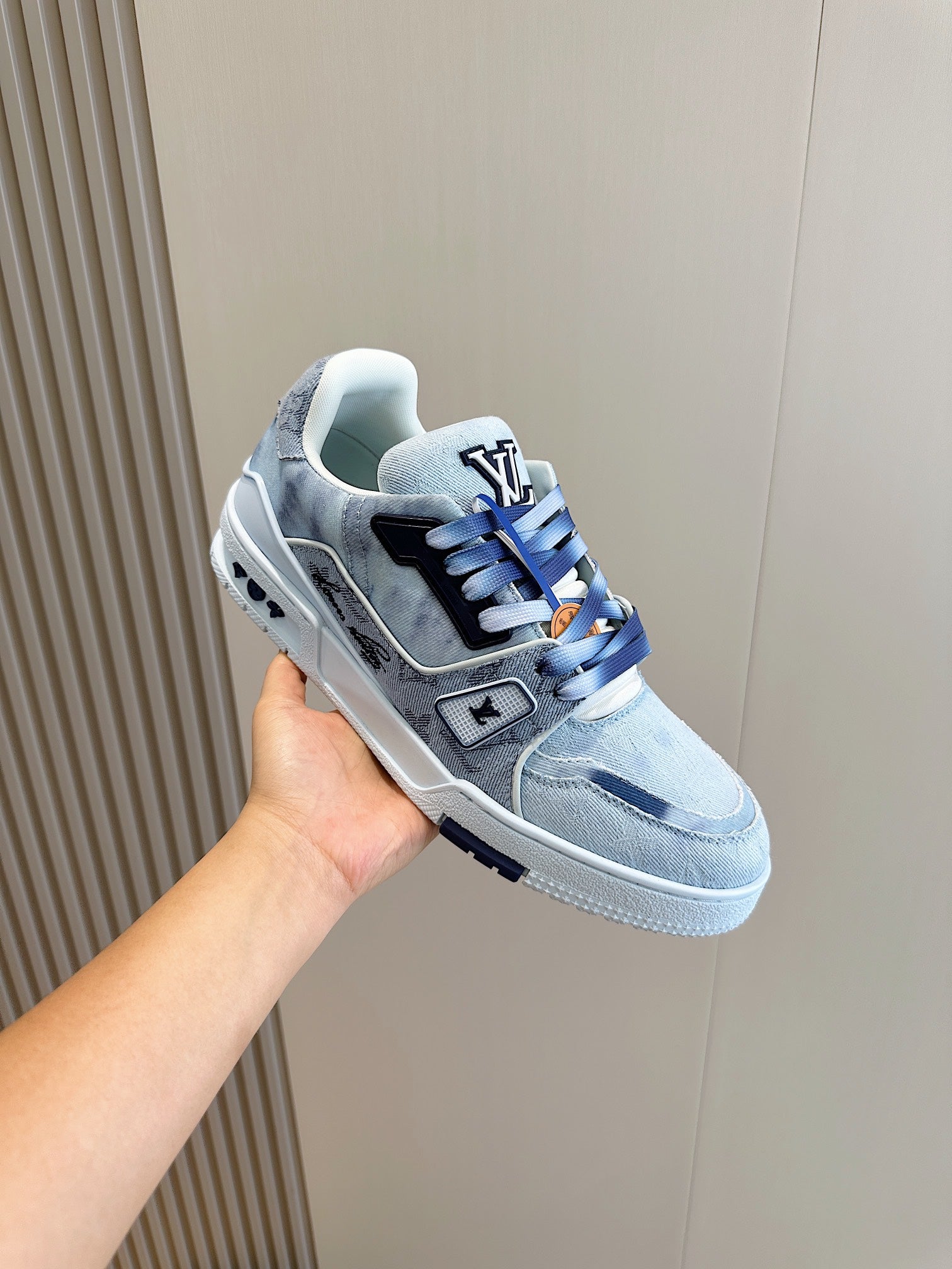 LV TRAINER SNEAKER LIGHT BLUE MONOGRAM DENIM