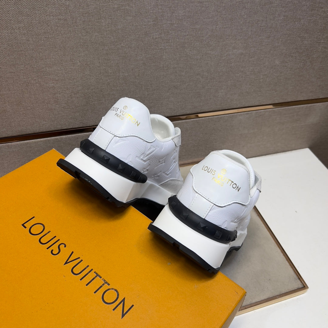 LV TRAINER SNEAKER WHITE EMBOSSED CALFSKIN AND GREY SUEDE