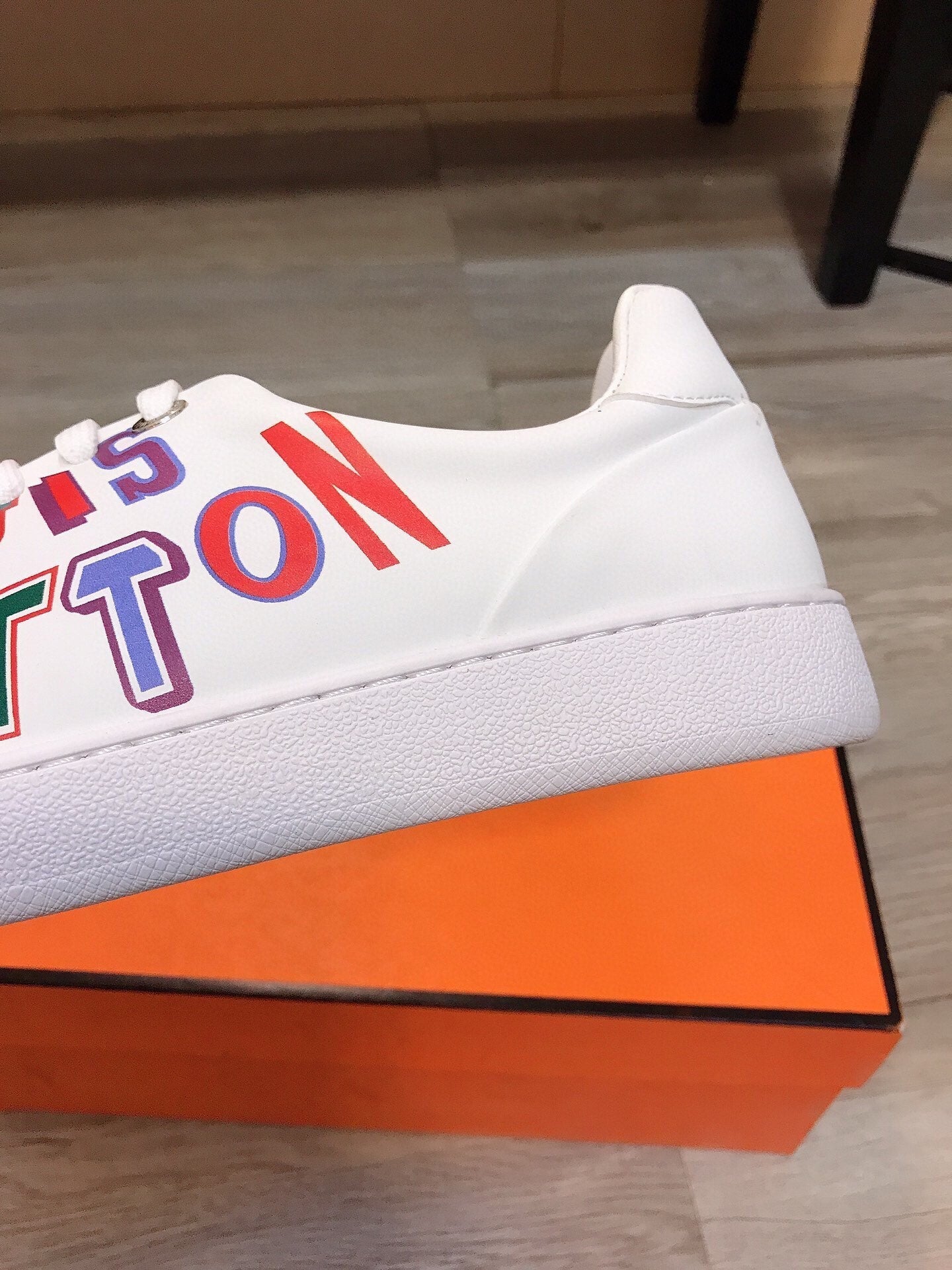 LV TRAINER WHITE CALFSKIN WITH COLORFUL LOGO