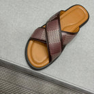 • Premium LV men's slippers, synchronizing with the 2024 early autumn runway collection. The slippers feature a high-quality fabric upper and an original, exclusive comfort sole, ensuring exceptional comfort. These are original factory-followed products.