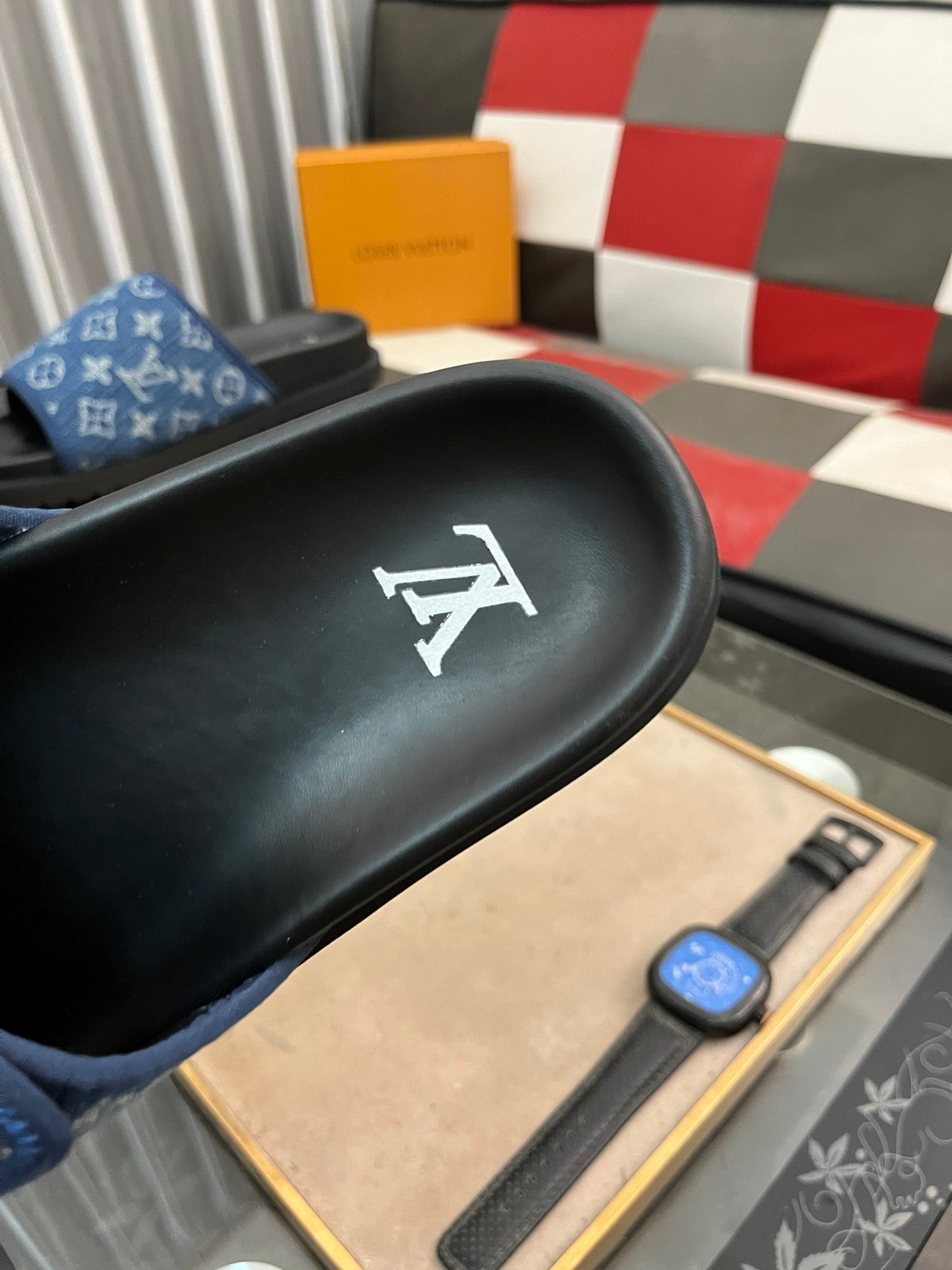 MIAMI MULE IN DENIM BLUE MONOGRAM JACQUARD