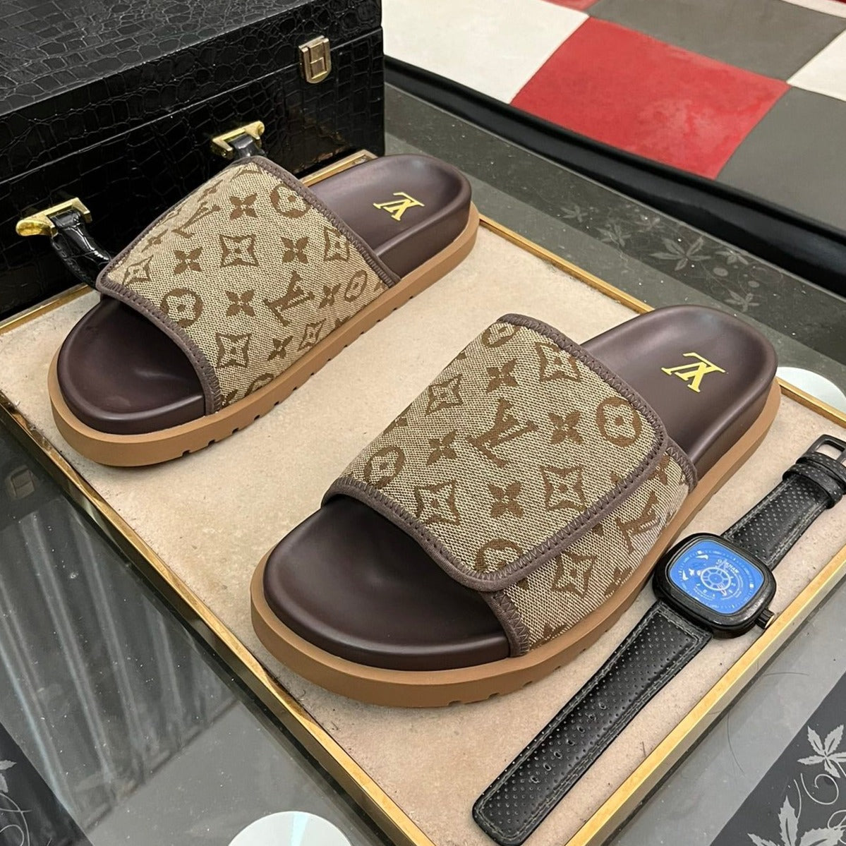 MIAMI MULE IN PEANUT BROWN MONOGRAM JACQUARD