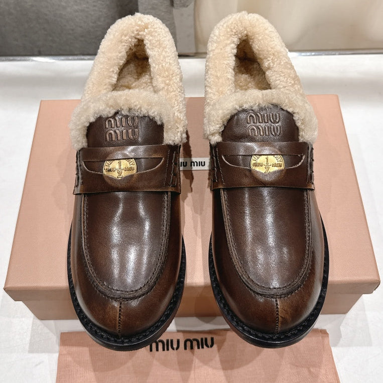 MiuMiu 25 Fur Loafer Brown mix Beige Cowhide 535595