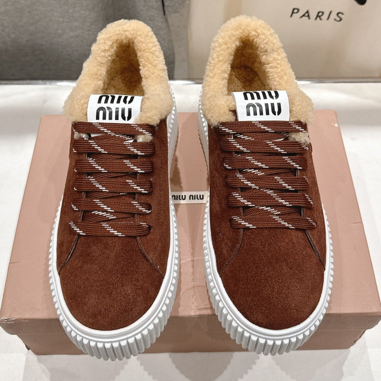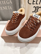 MiuMiu 25 Sneaker Brown Beige Suede Fur 535589