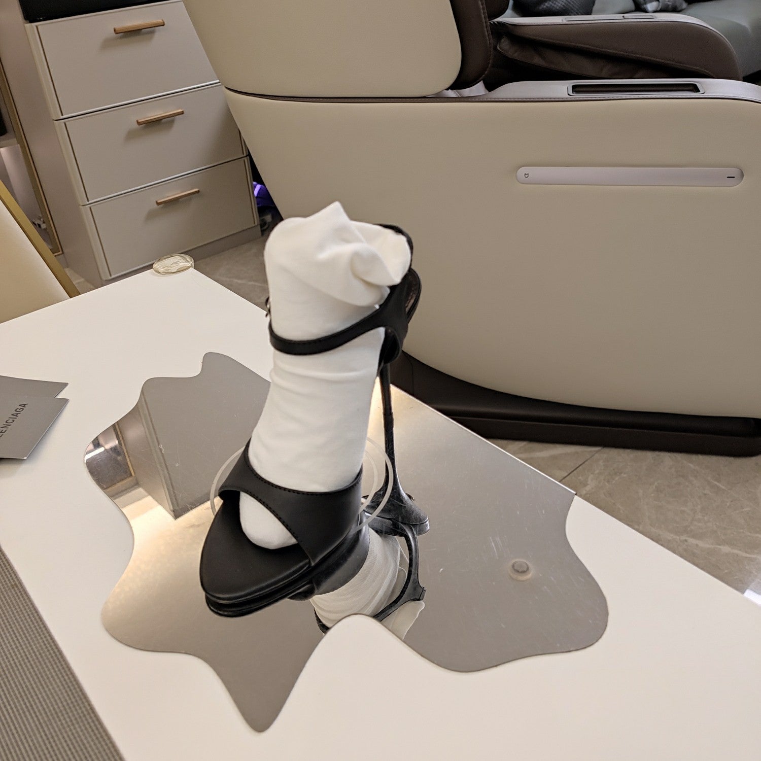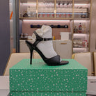 OPEN TOE STRAPPY HIGH HEEL IN BLACK CALFSKIN