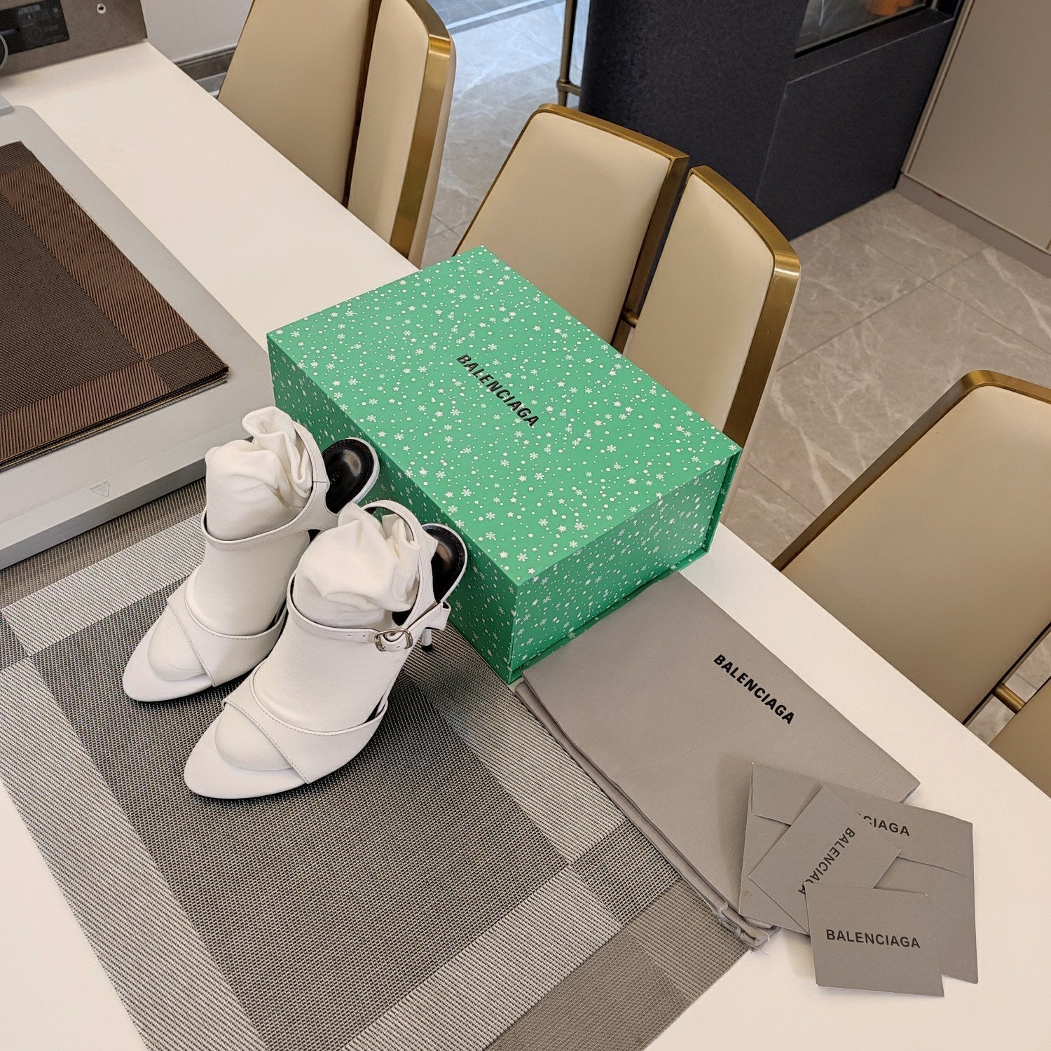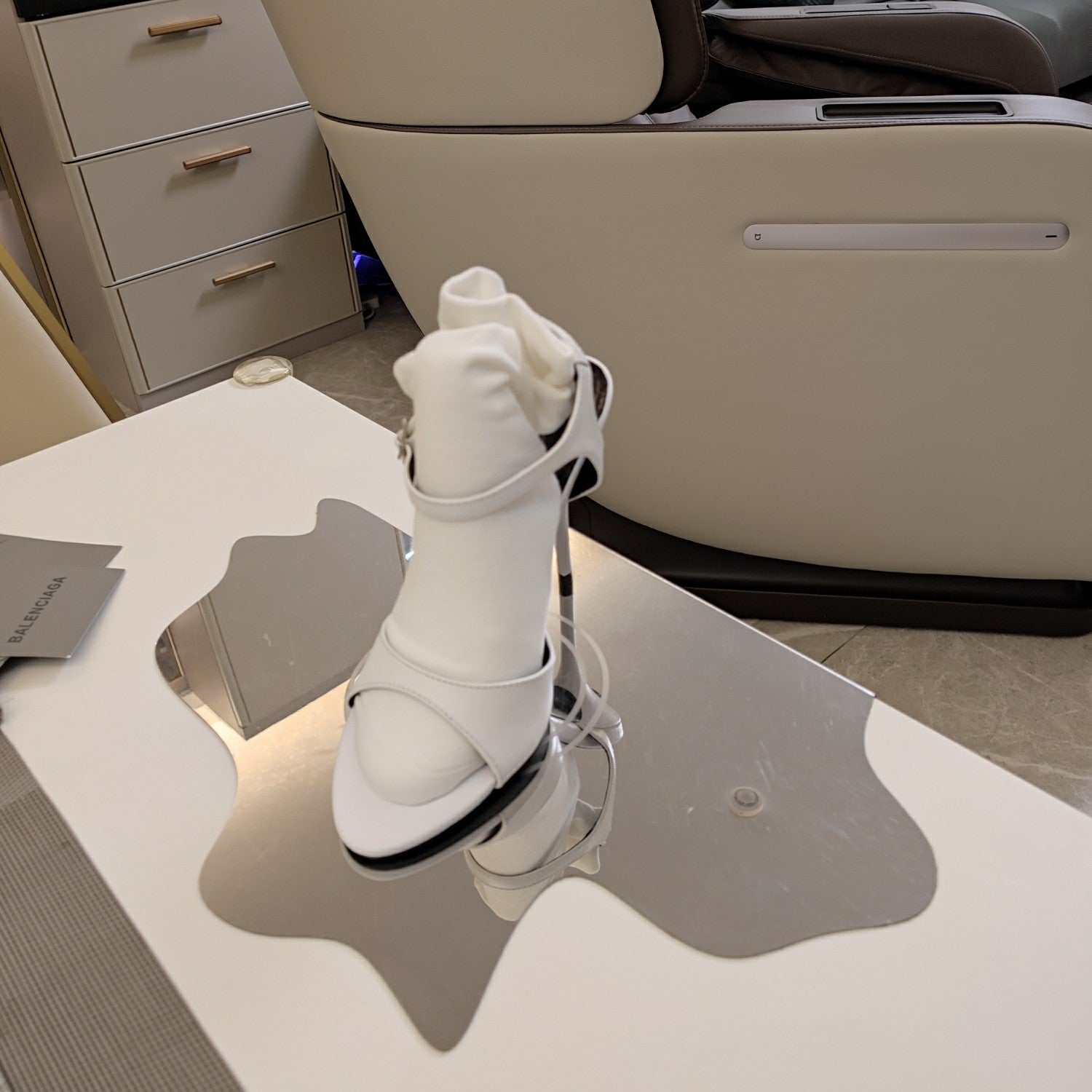 OPEN TOE STRAPPY HIGH HEEL IN WHITE CALFSKIN