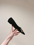 POINTED BB GOLD BUCKLE BALLET FLAT IN BLACK SUEDE