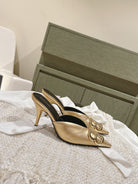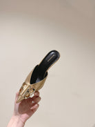 POINTED BB GOLD BUCKLE HIGH MULES IN GOLD METALLIC CALFSKIN