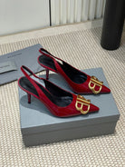 POINTED BB GOLD BUCKLE HIGH SLINGBACK 80MM IN RED PATENT CALFSKIN