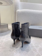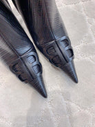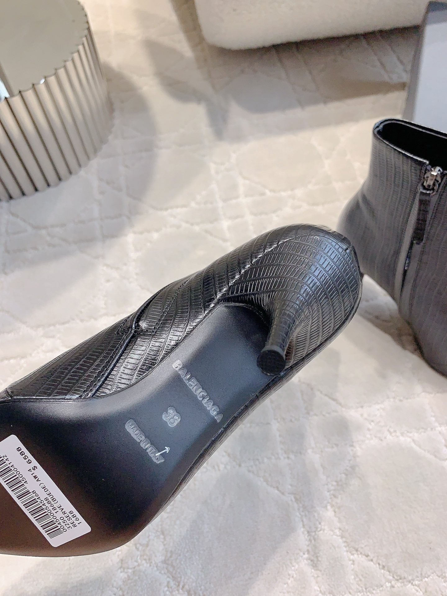 POINTED-TOE HIGH HEEL BOOTS IN BLACK LIZARD EMBOSSED CALFSKIN