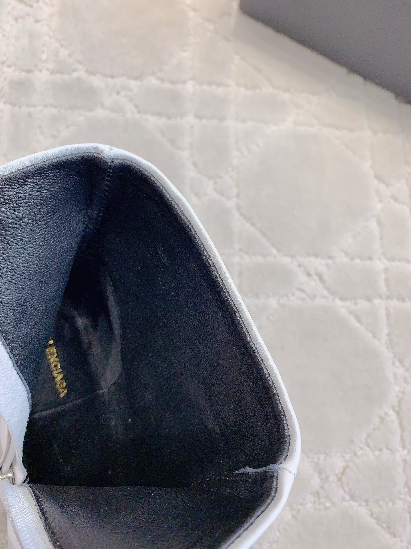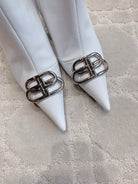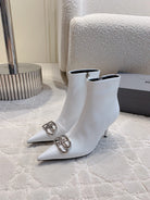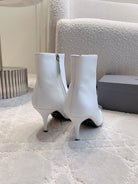 POINTED-TOE HIGH HEEL BOOTS IN WHITE SMOOTH LAMBSKIN