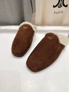 Prada 25s Furry Slippers Brown Suede And Wool 535491