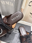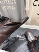 Prada 25s mule dark brown sheepskin 535501