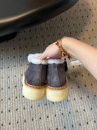 Prada 25s platform ankle boots dark gray suede and wool 538441