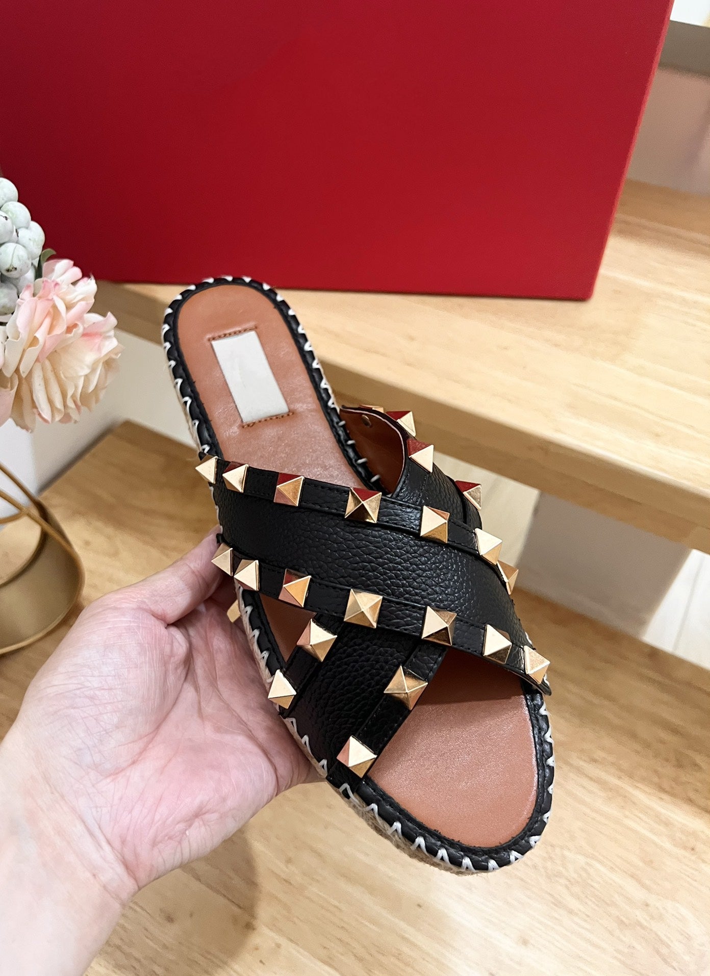 Rockstud Crisscross Espadrilles 20mm Sandal Wedges Black Tan