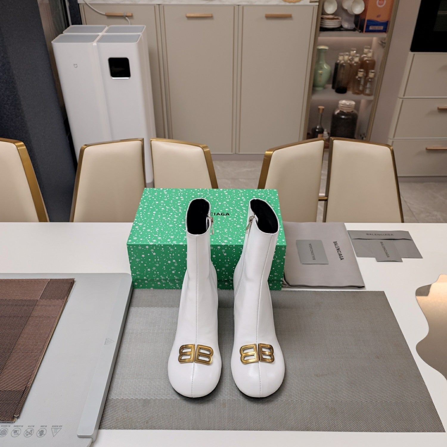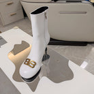 ROUND-TOE HIGH HEEL BOOTS IN WHITE SMOOTH LAMBSKIN