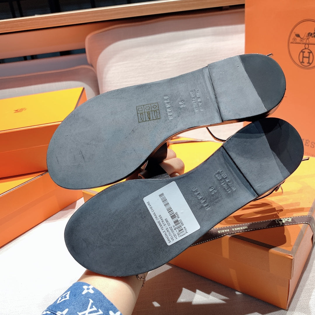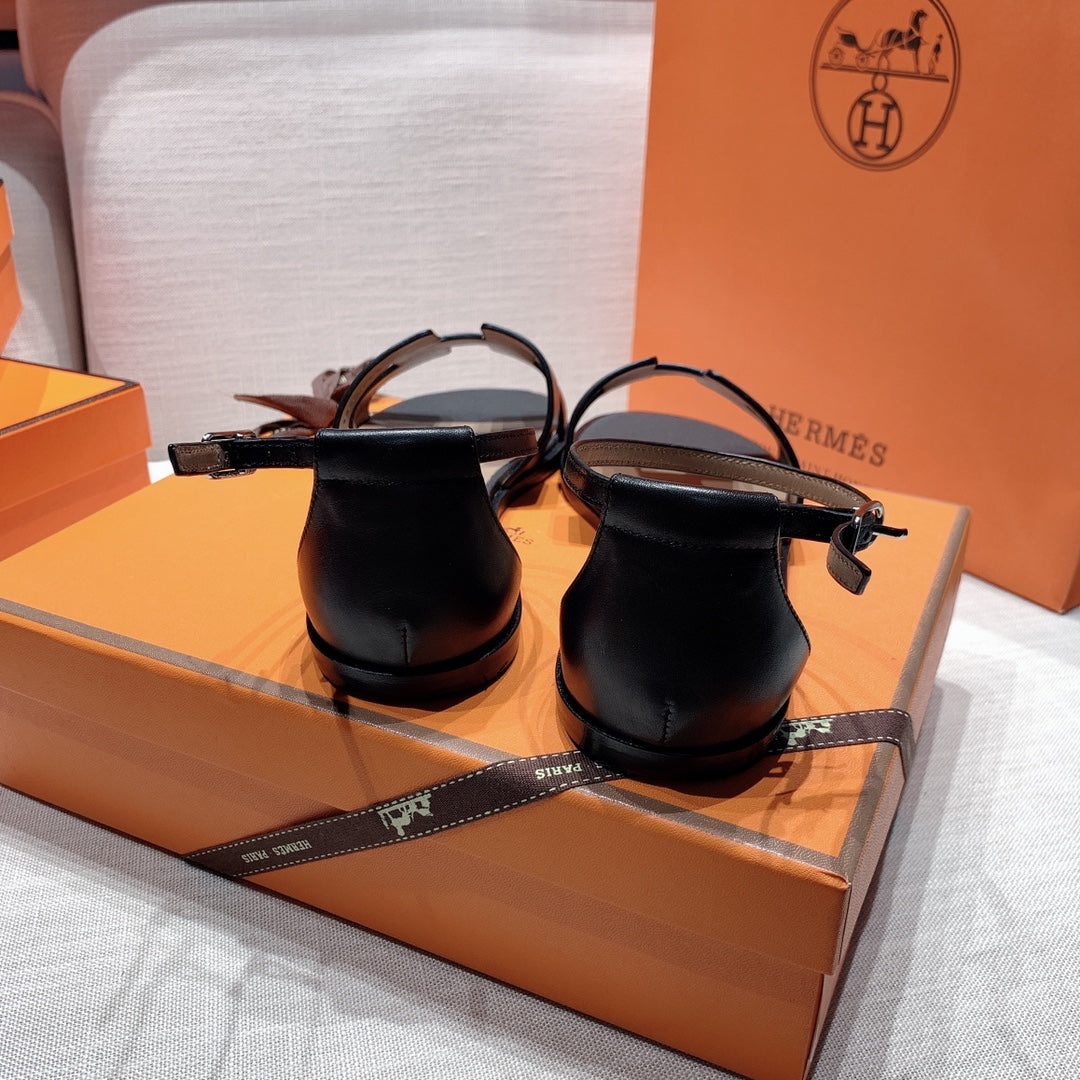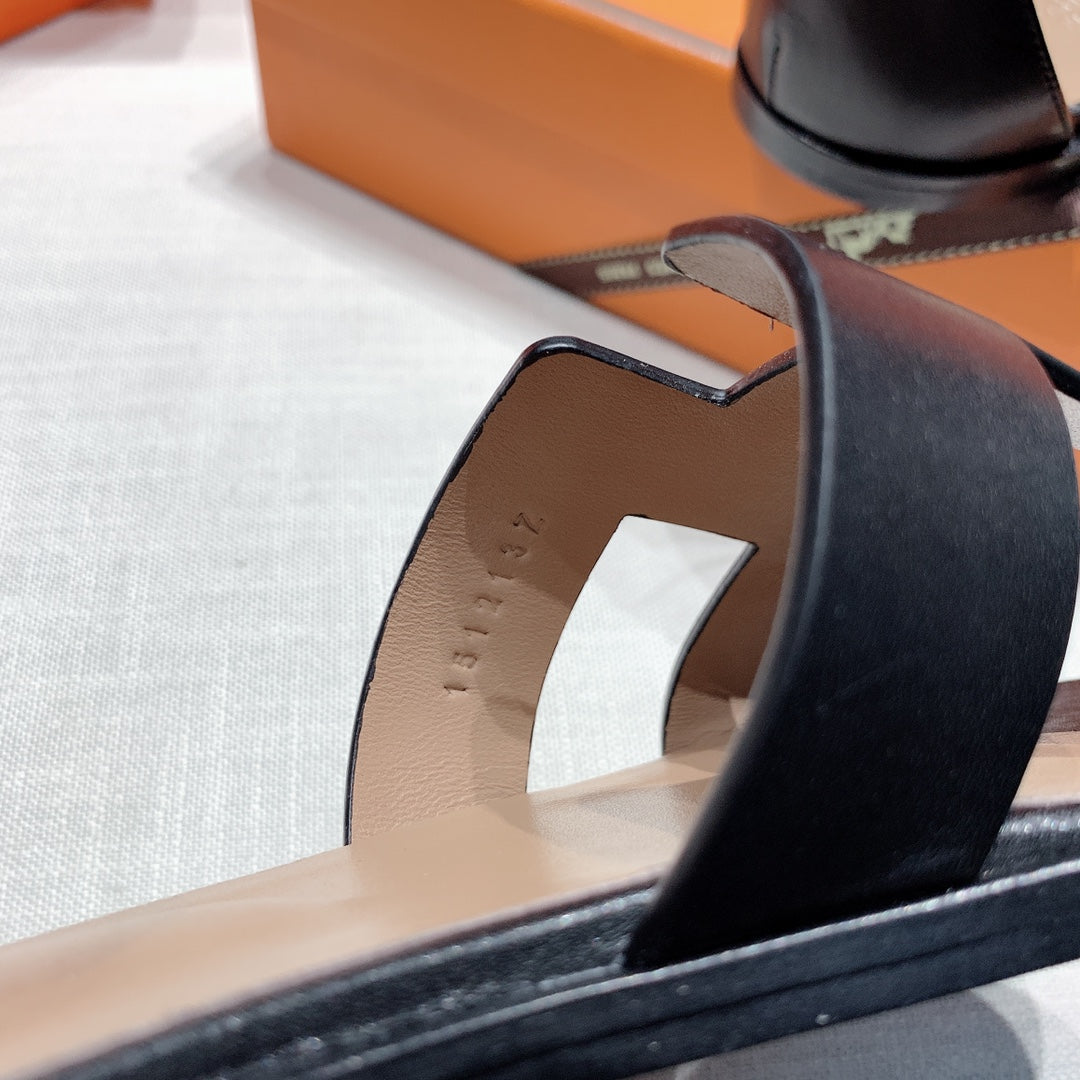 - Material: Sandal in Clafskin with straight cut edges, "H" cut-out detail and thin ankle strap.