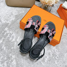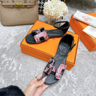 - Material: Sandal in Clafskin with straight cut edges, "H" cut-out detail and thin ankle strap.