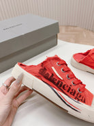SNEAKER MULES IN RED CANVAS GRAFFITI LOGO