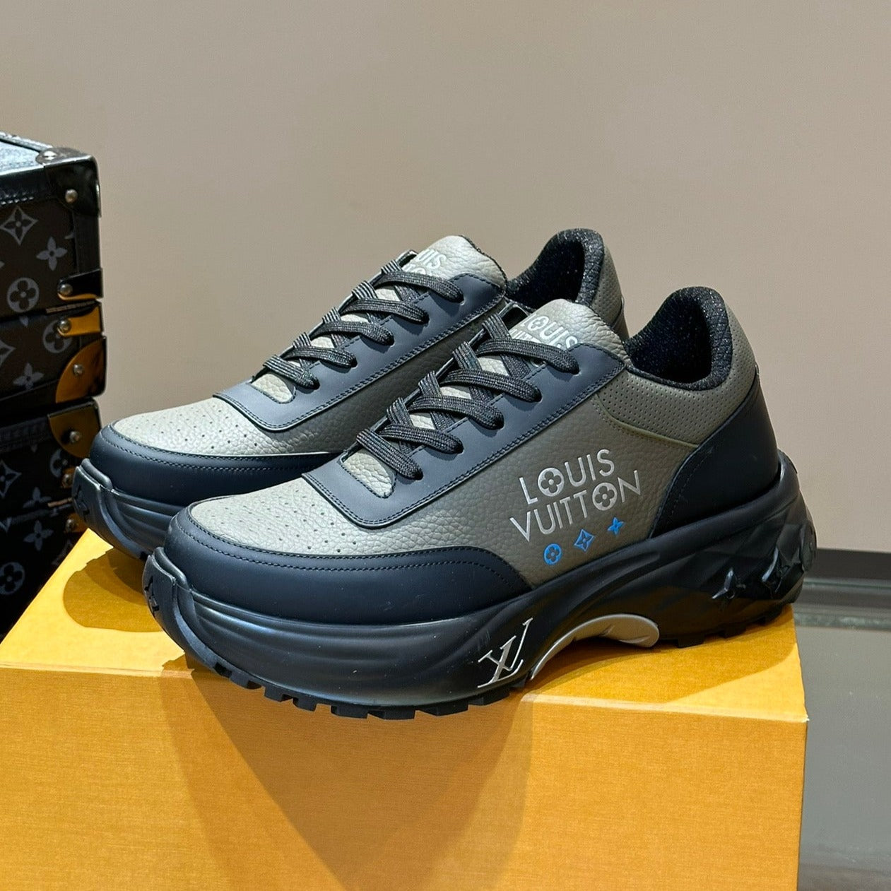 THICK-SOLED SNEAKER GREY AND BLACK CALFSKIN