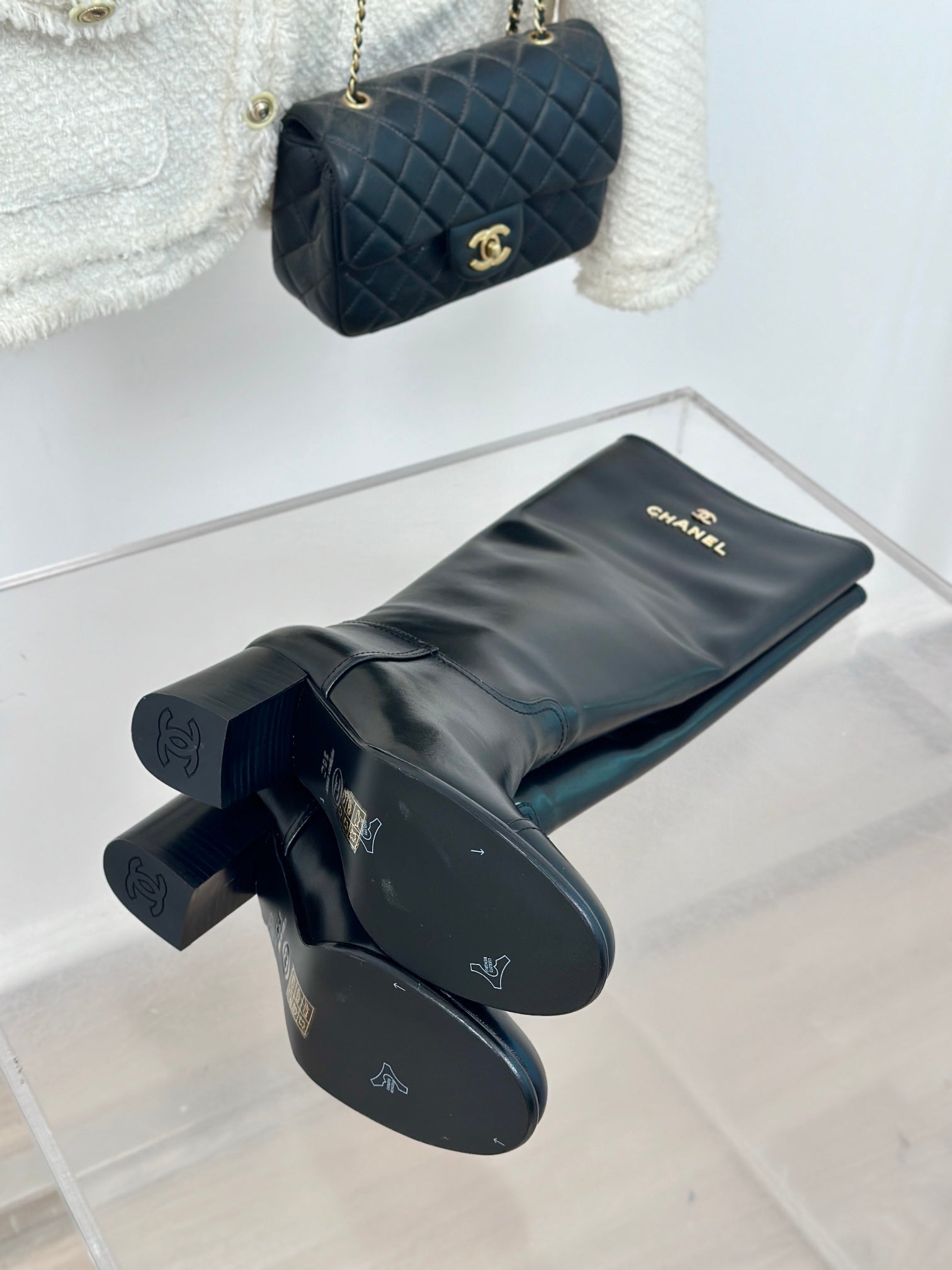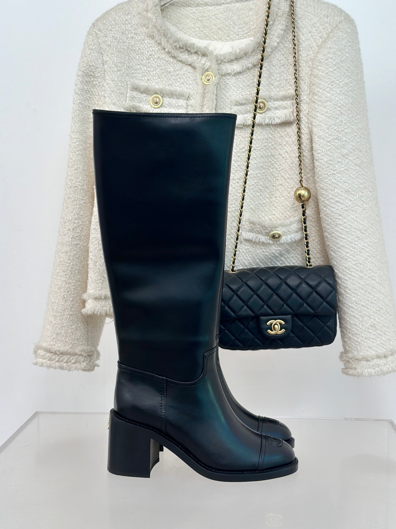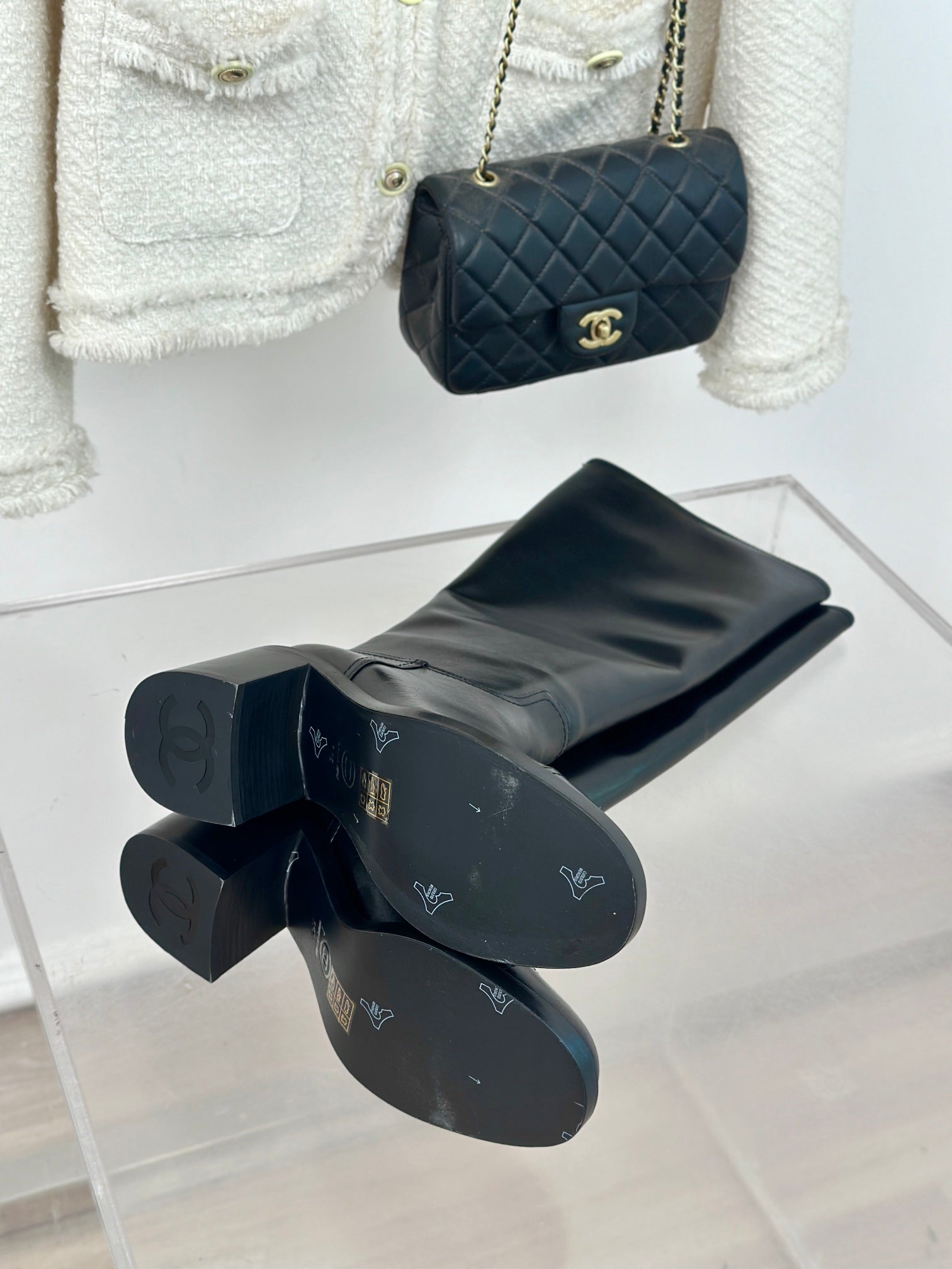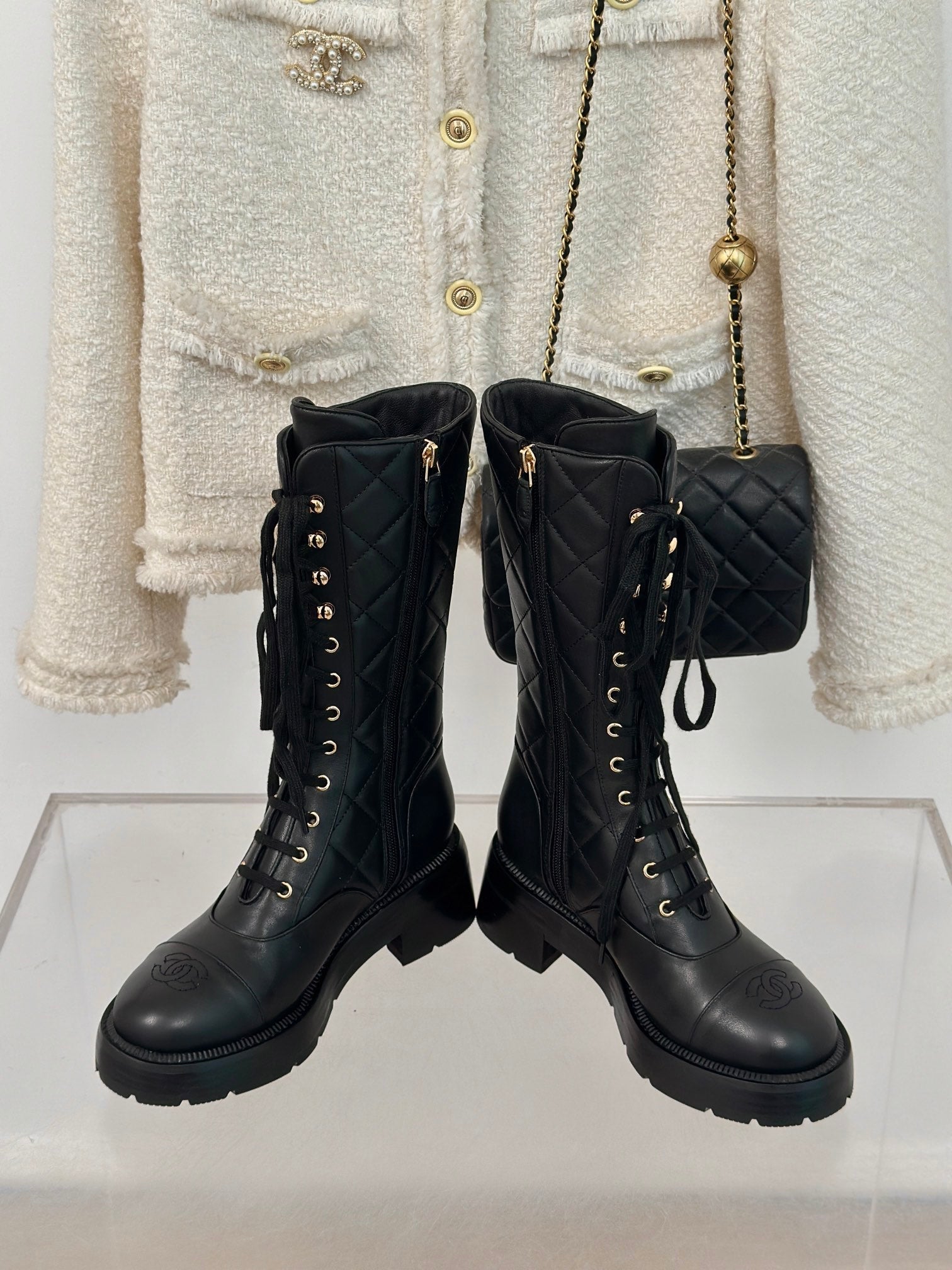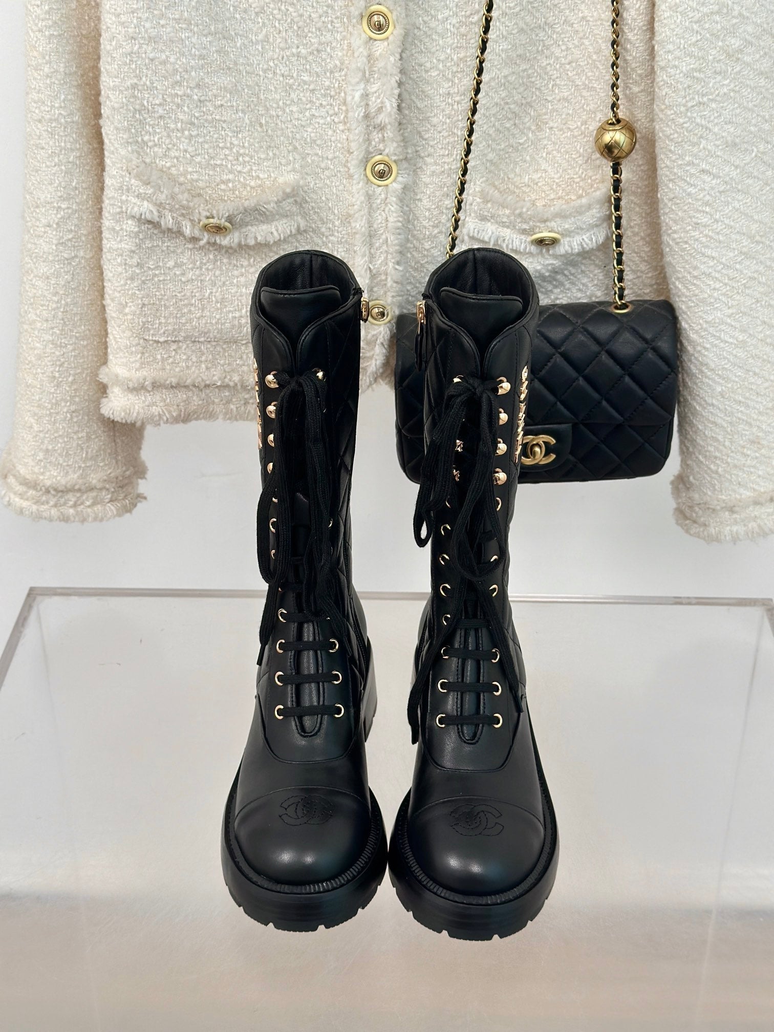 CC High Boots 80mm Glossy Black Wrinkled Quilted Calfskin