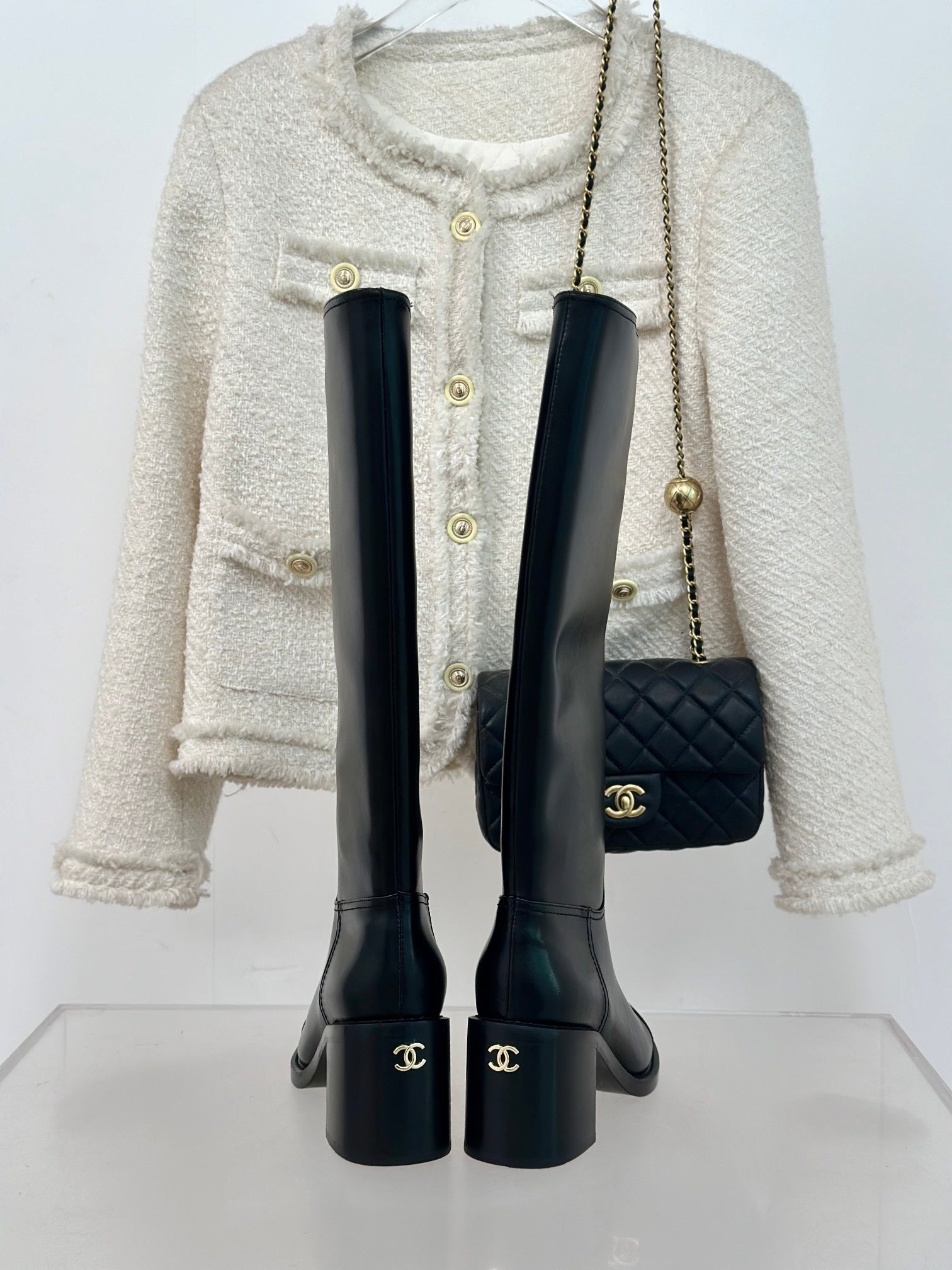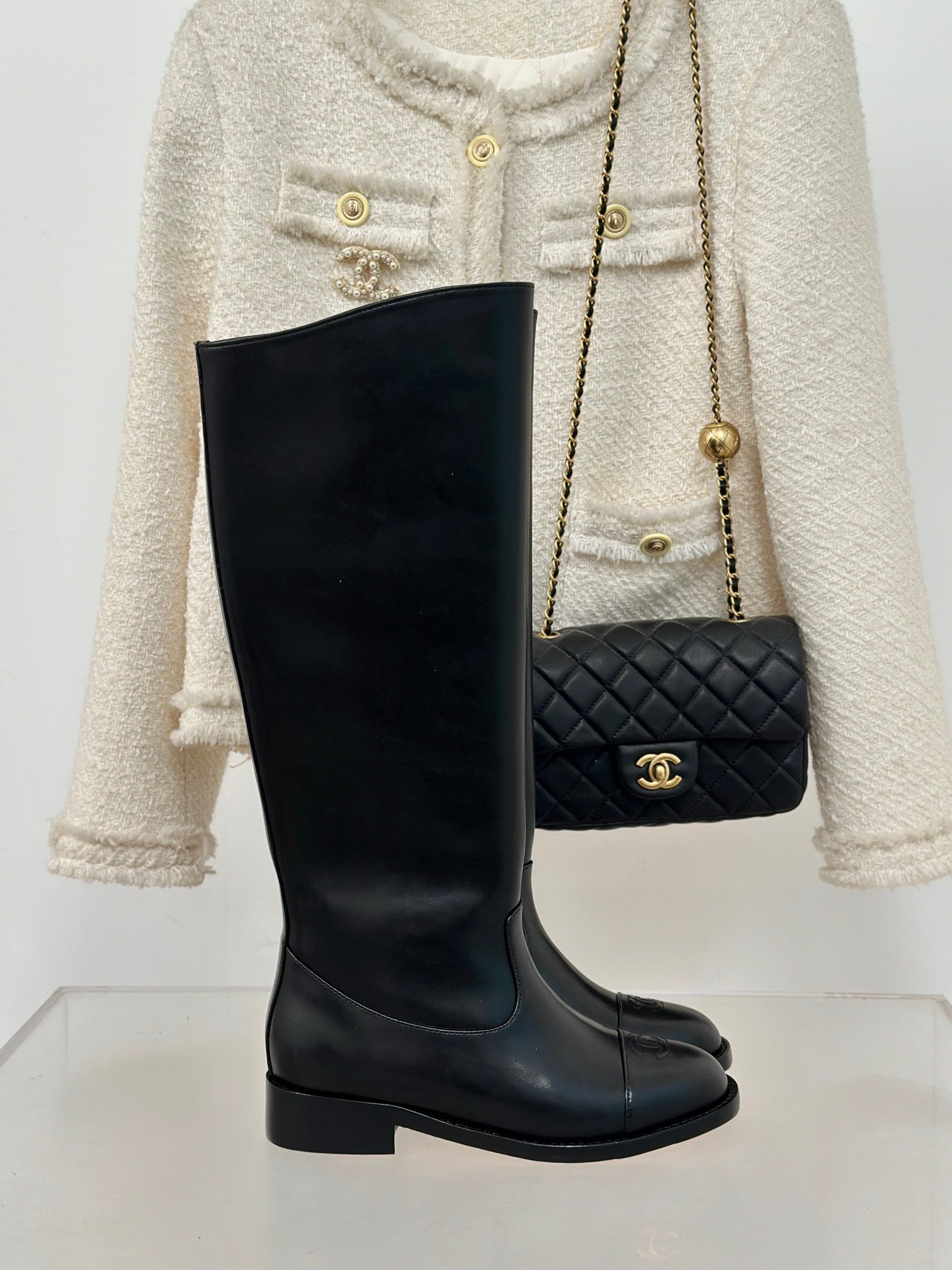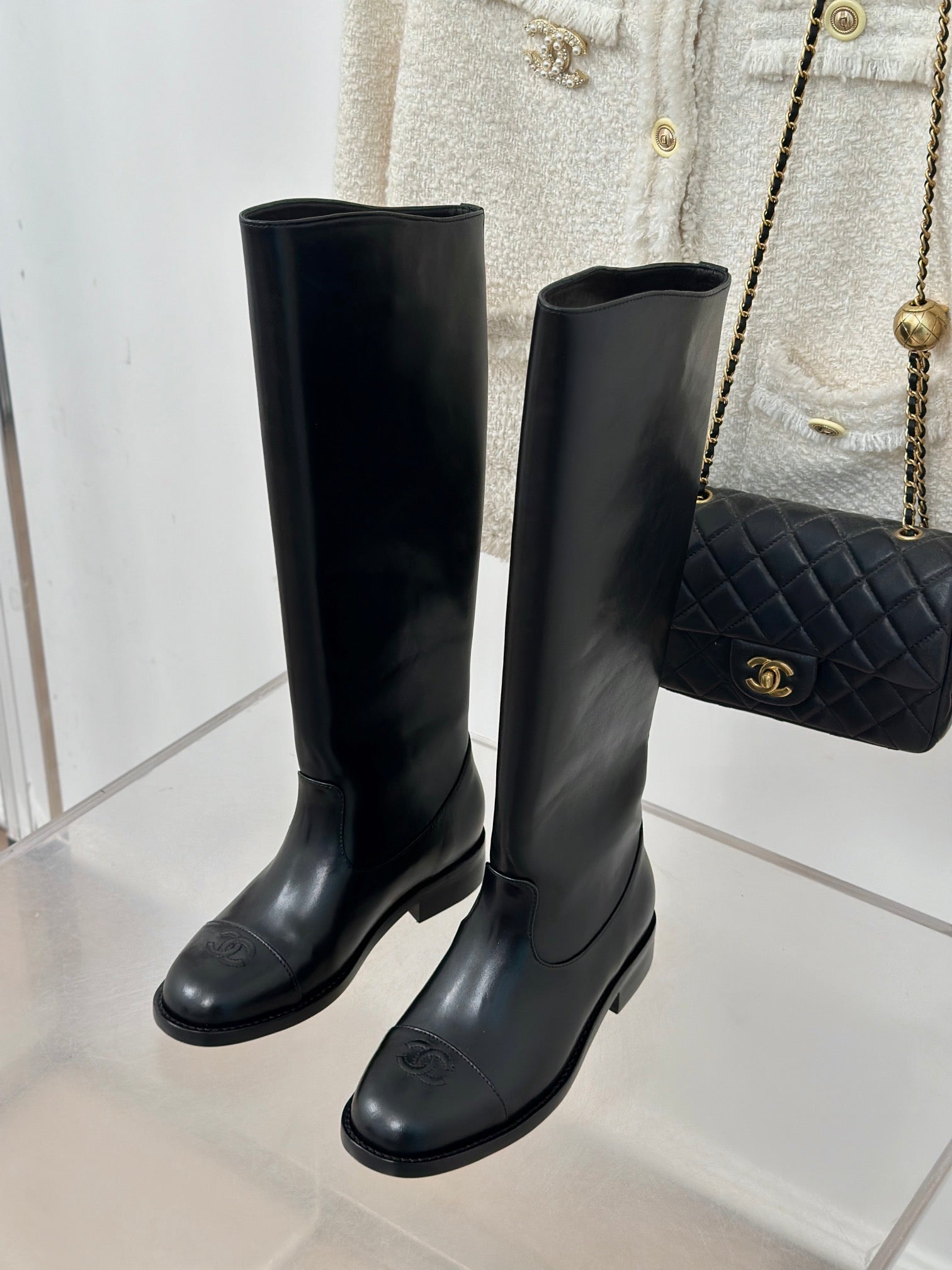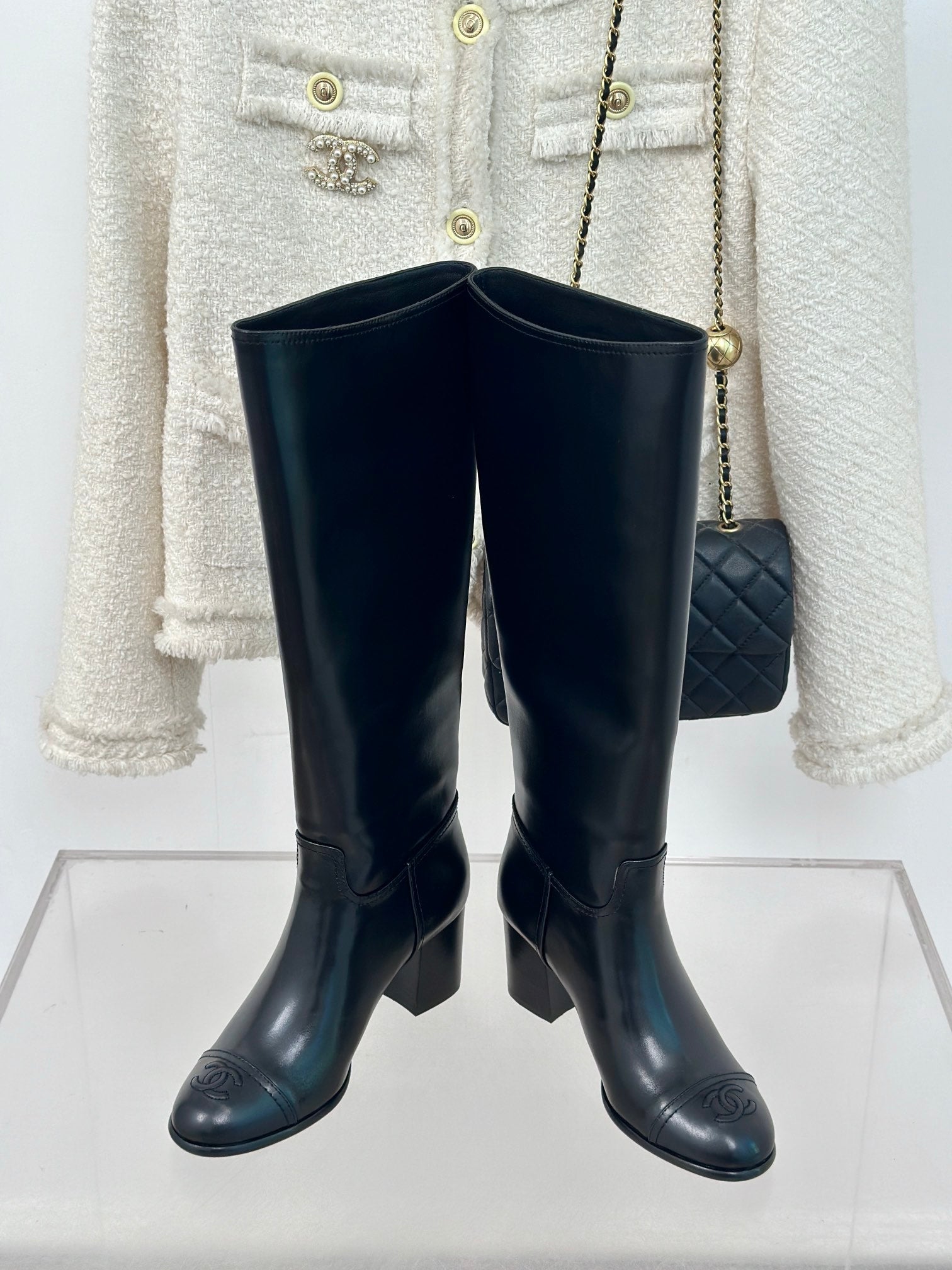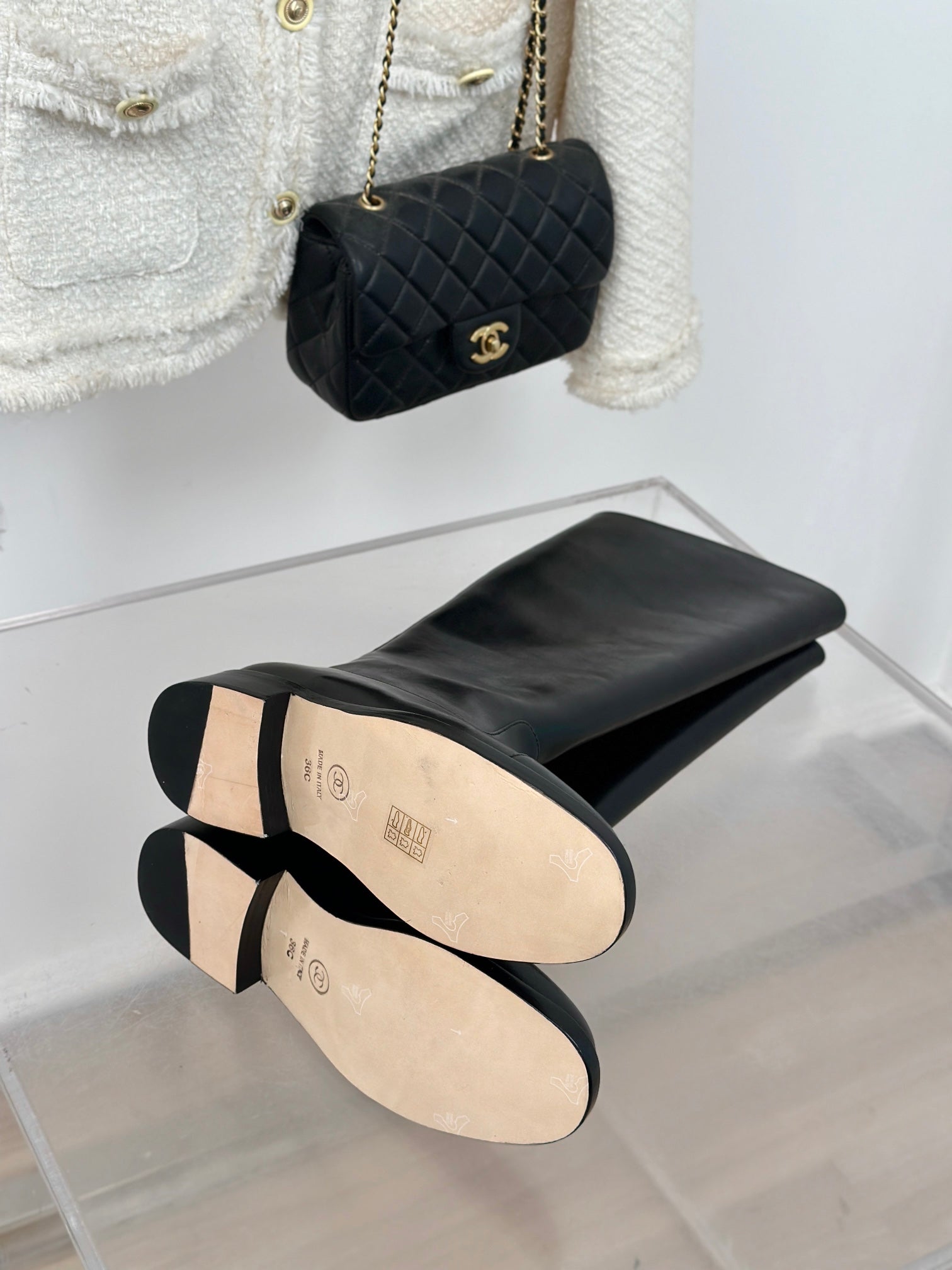 CC High Boots 80mm Glossy Black Wrinkled Quilted Calfskin