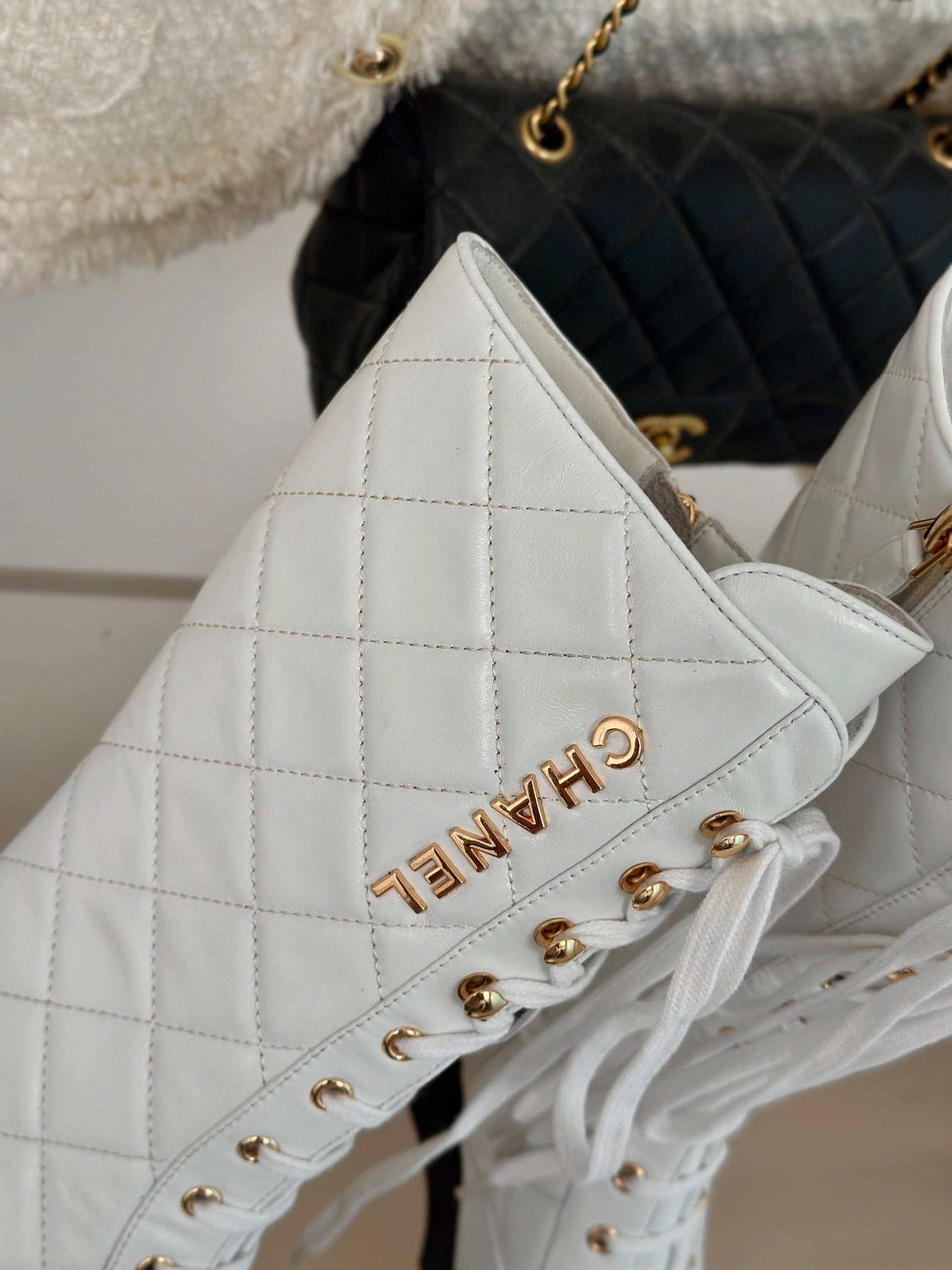 CC Classic Sneaker 50mm White Quilted Wrinkled Calfskin