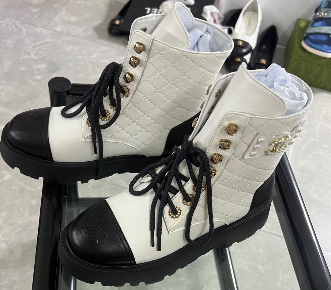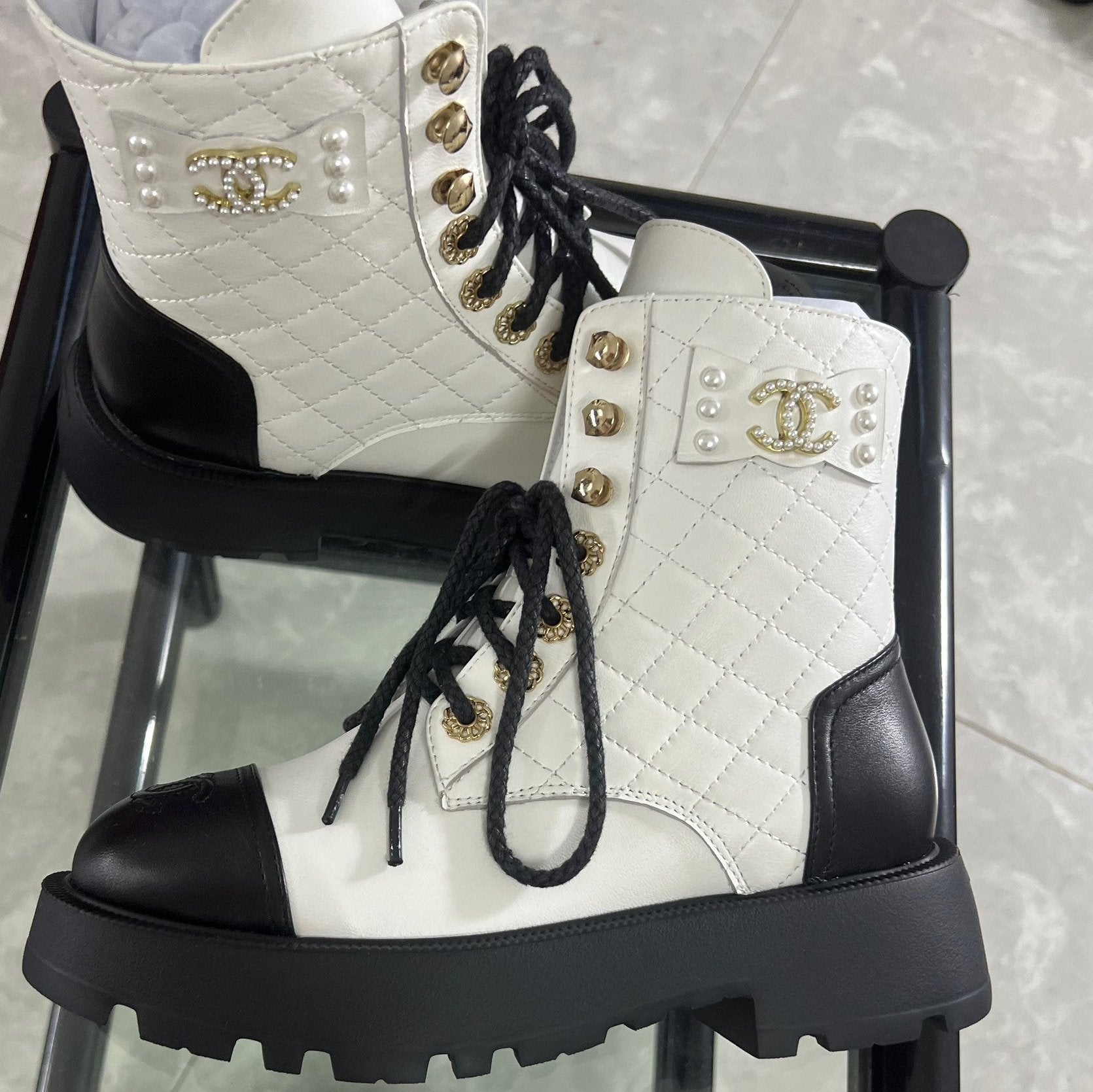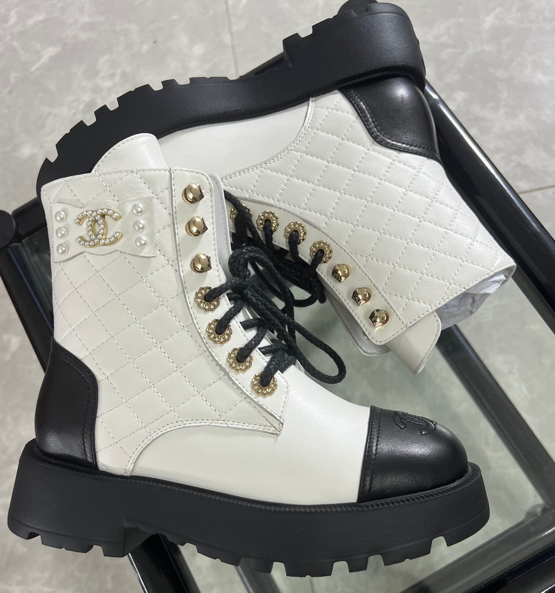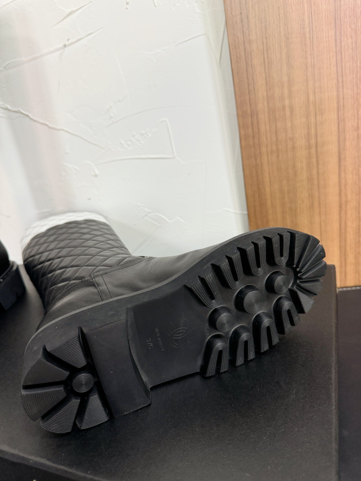 CC Combat Boots Dark Beige Black Quilted Lambskin 944575
