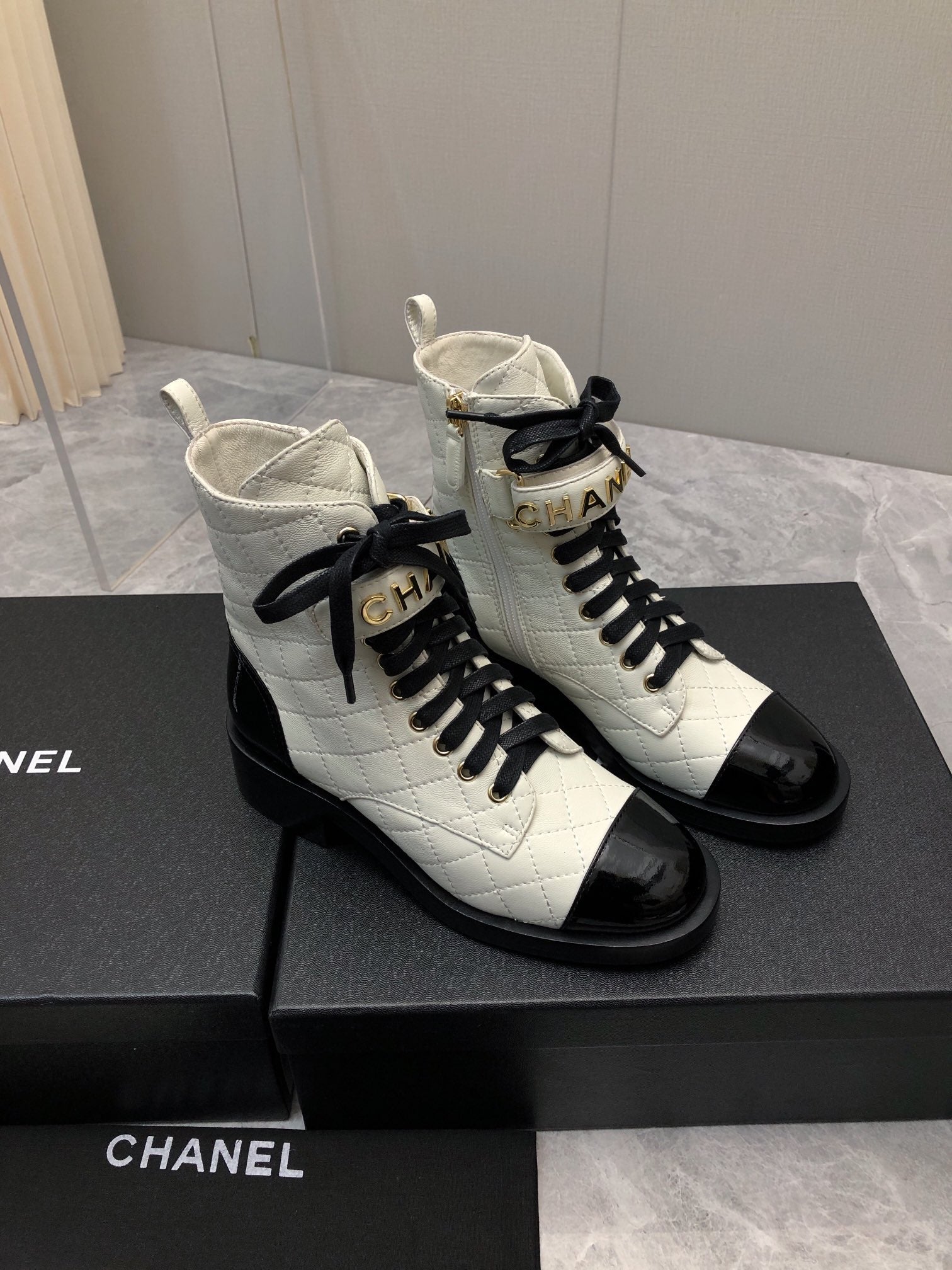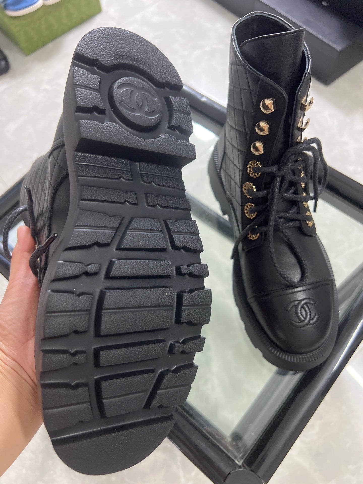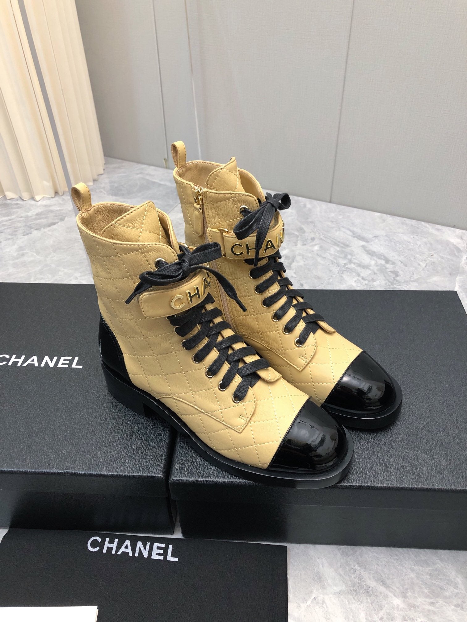 CC Combat Boots Dark Beige Black Quilted Lambskin 944575