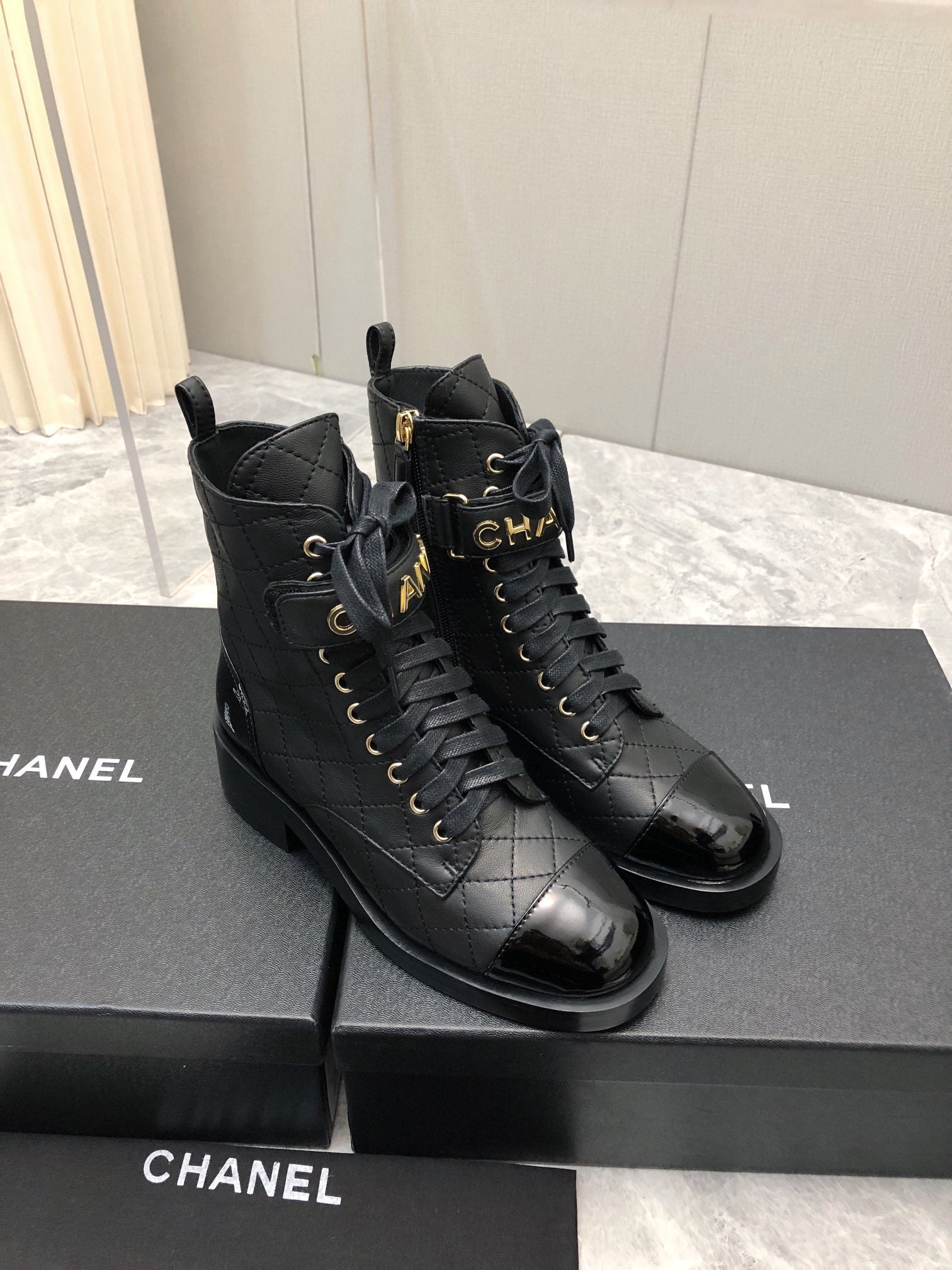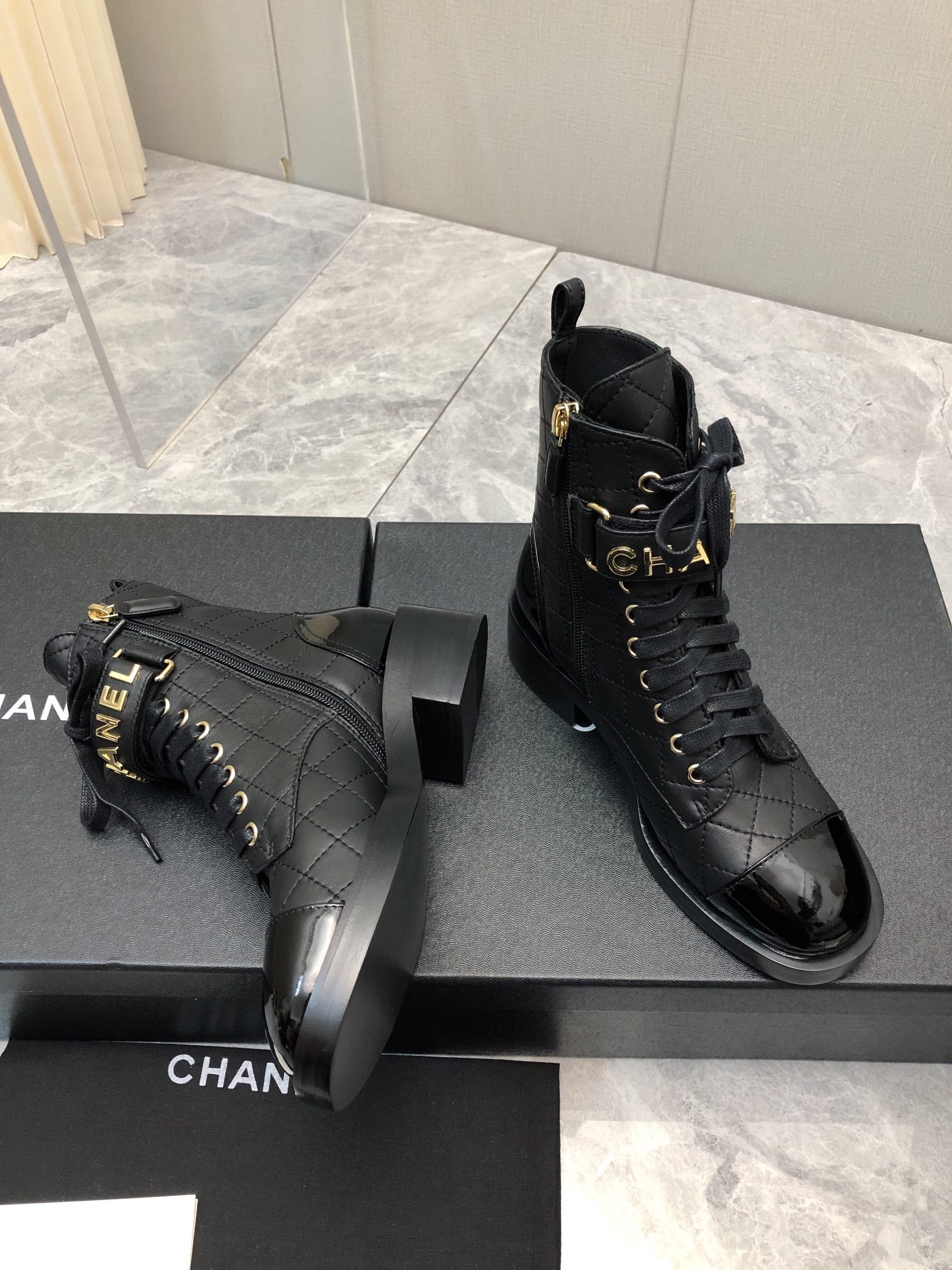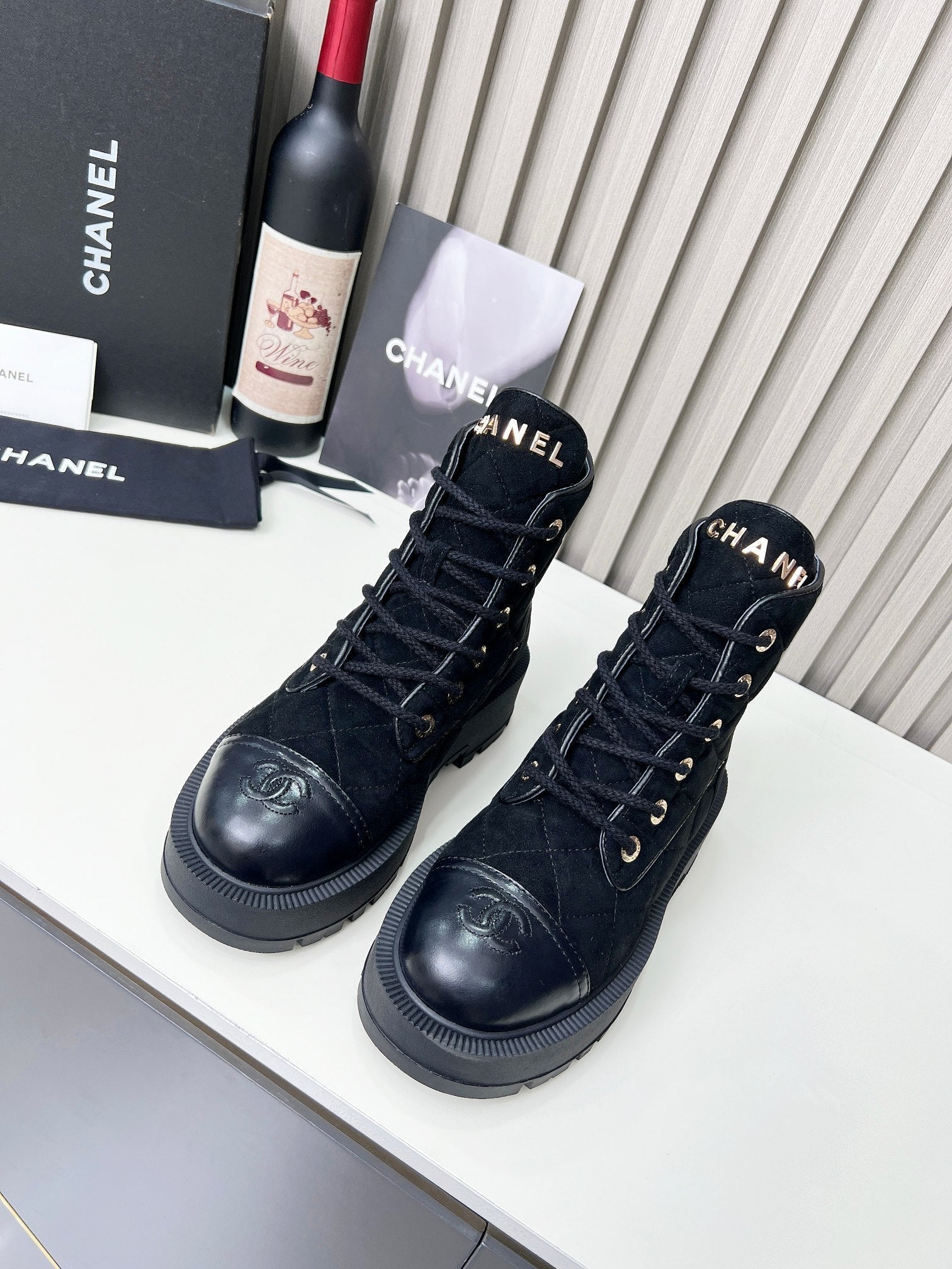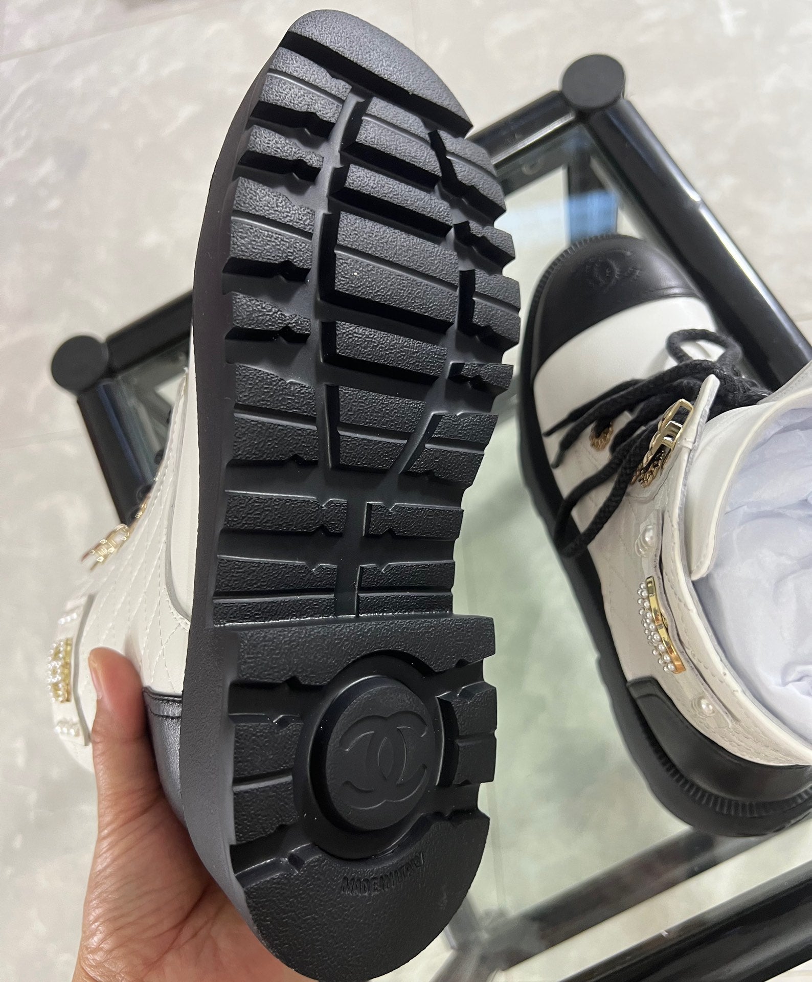 CC Combat Boots Dark Beige Black Quilted Lambskin 944575