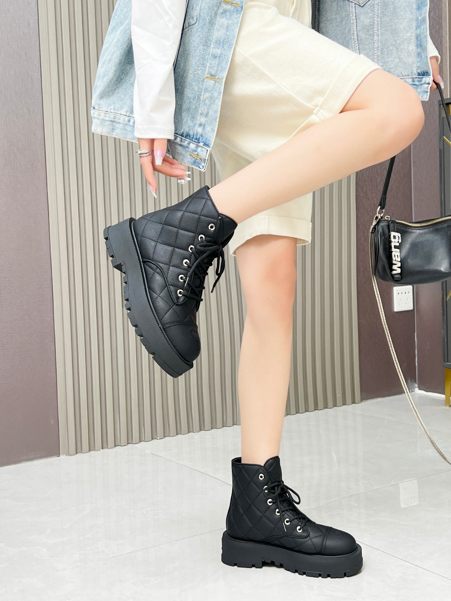 CC Combat Boots Pastel Pink Black Quilted Lambskin 944573