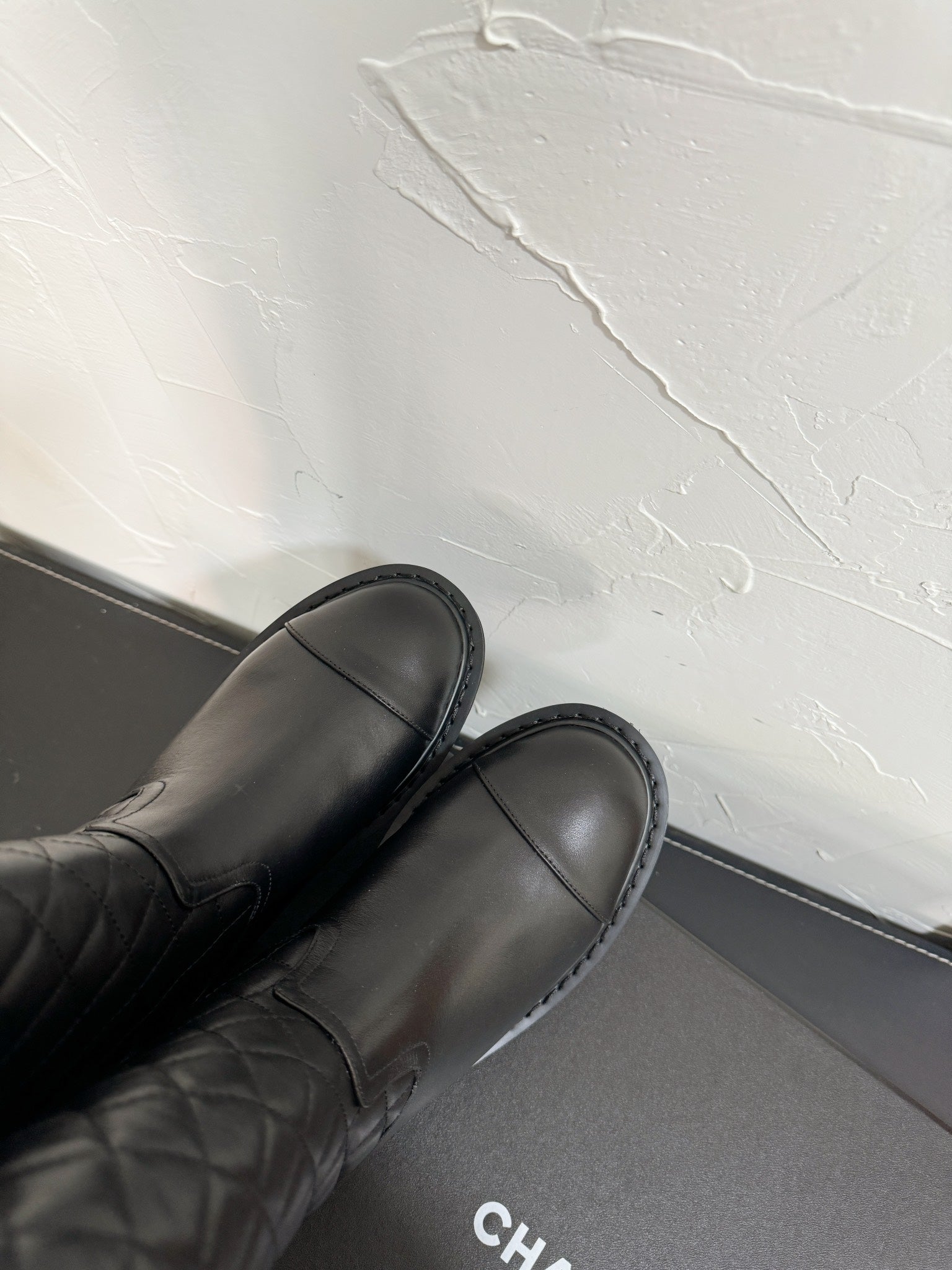 CC High Boots 40mm In Plain Black Mix White Quilted Calfskin 949750