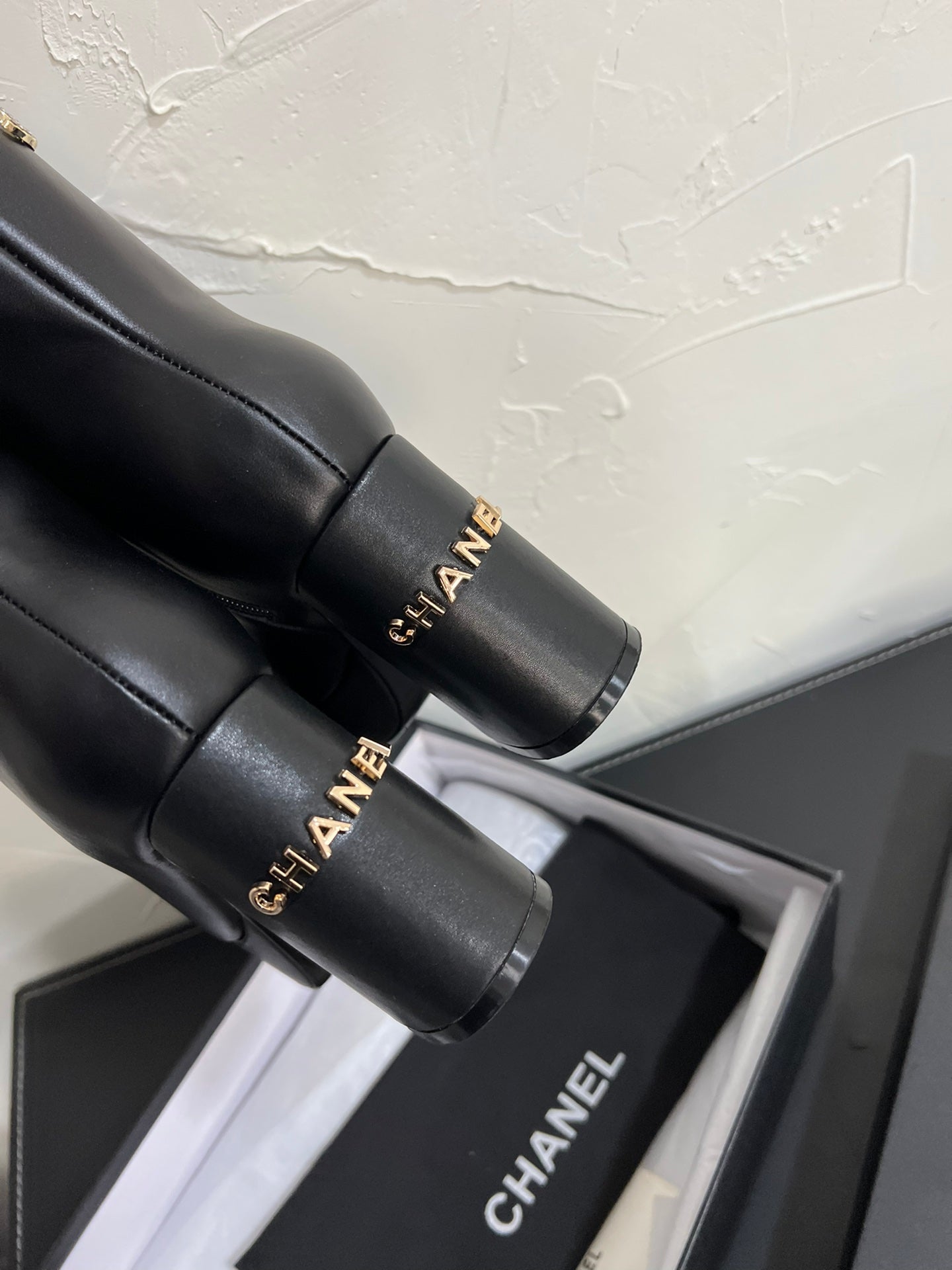 CC High Boots 40mm In Plain Black Mix Glossy Black Quilted Calfskin 949749