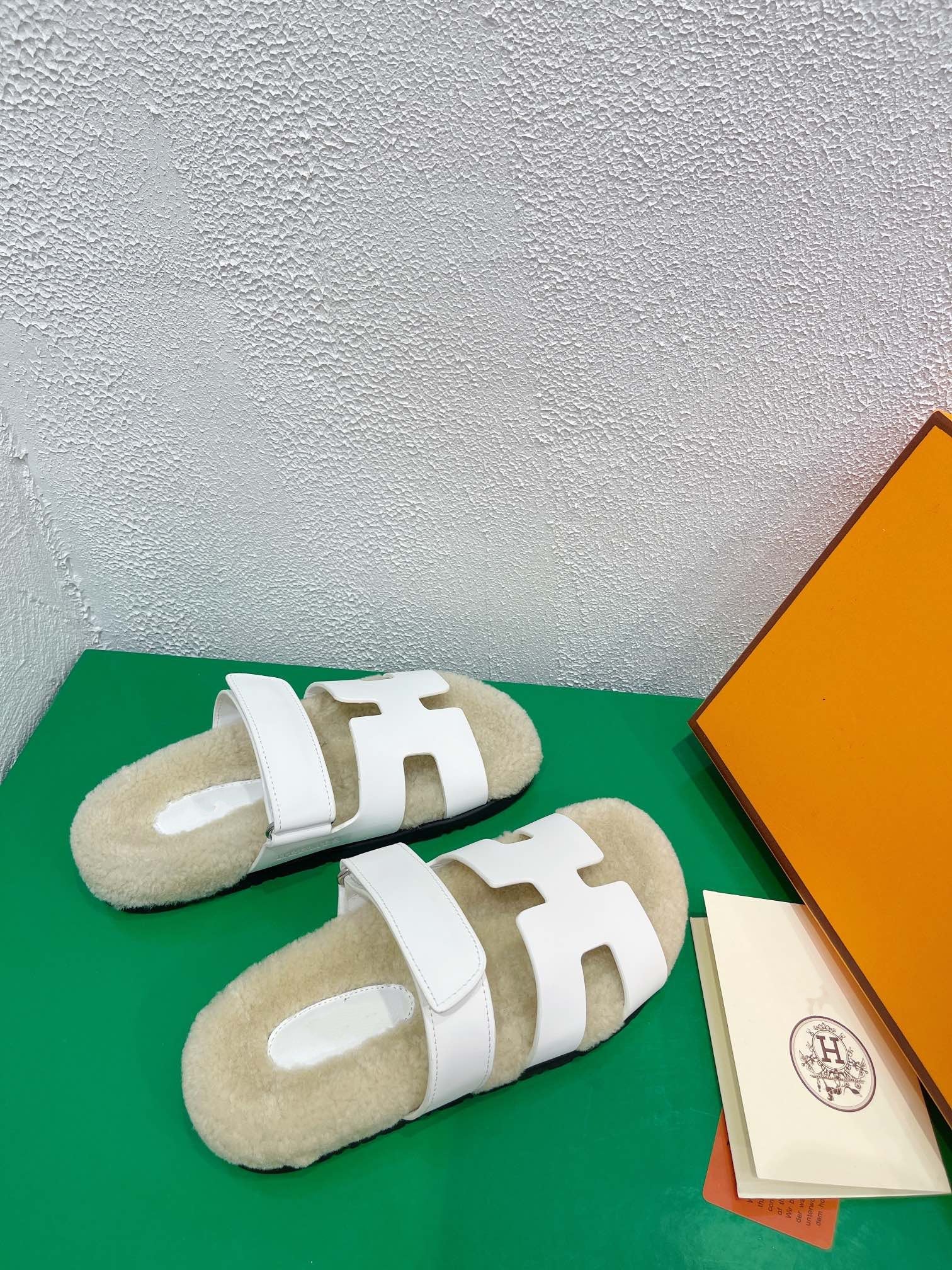 Chypre Sandal Beige shearling insole Black goatskin lining