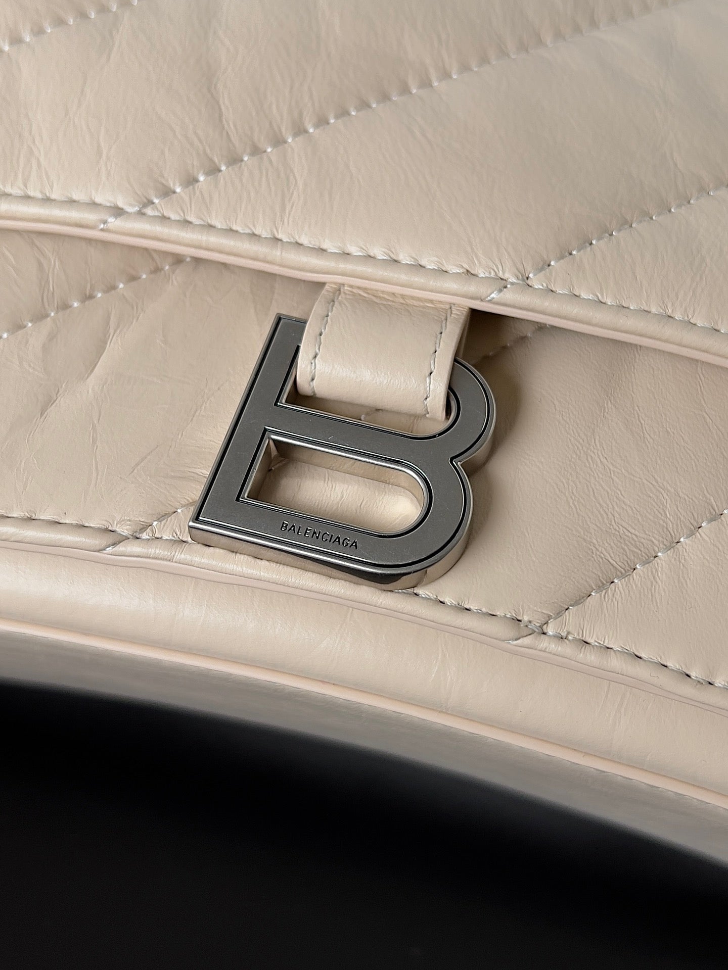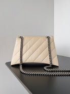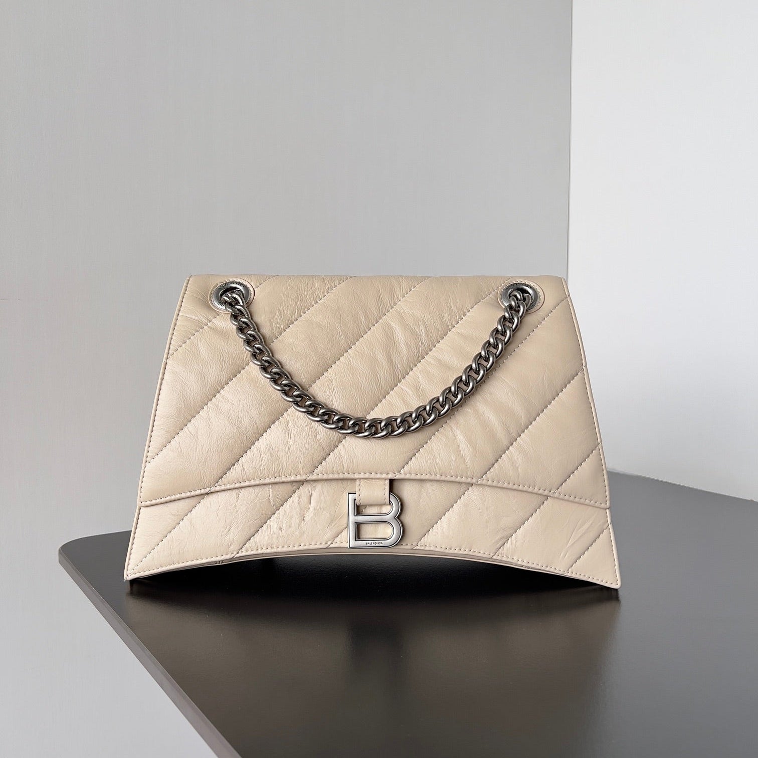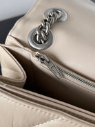 CRUSH CHAINED BAG 32 IN BEIGE QUILTED LAMBSKIN SILVER HARDWARE