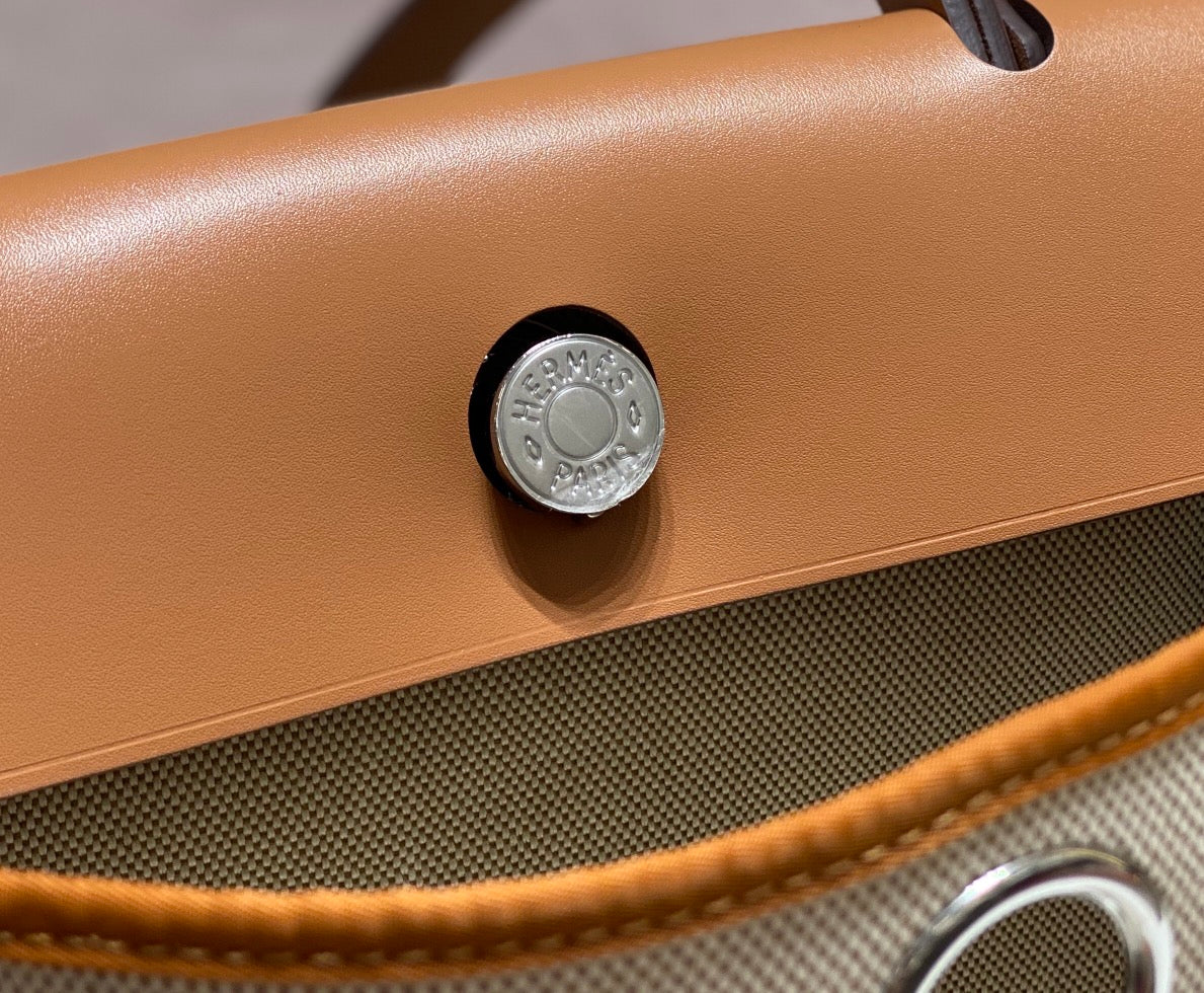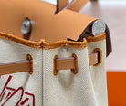HM Pegase Pop Herbag Zip 31 White Brown Canvas Black Cowhide Leather