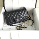 MINI RECTANGLE FLAP BAG 20CM BLACK LAMBSKIN SIILVER HARDWARE