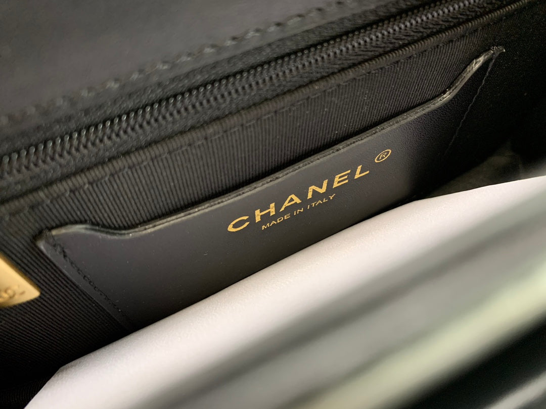 Coco Handle Flap Bag 19cm Black Grained Calfskin Gold Hardware