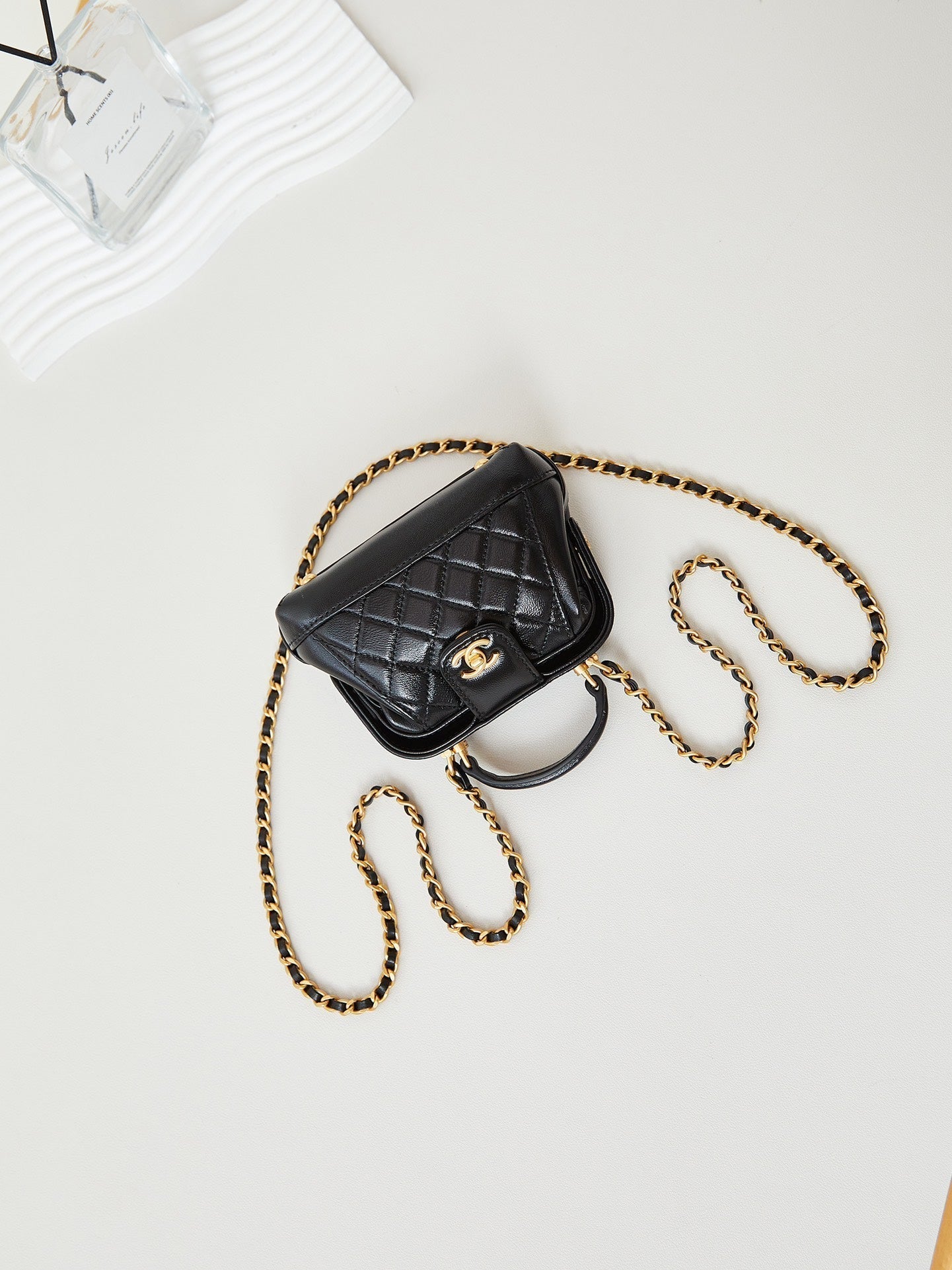 cc 24p hobo bag 28cm black lambskin gold hardware