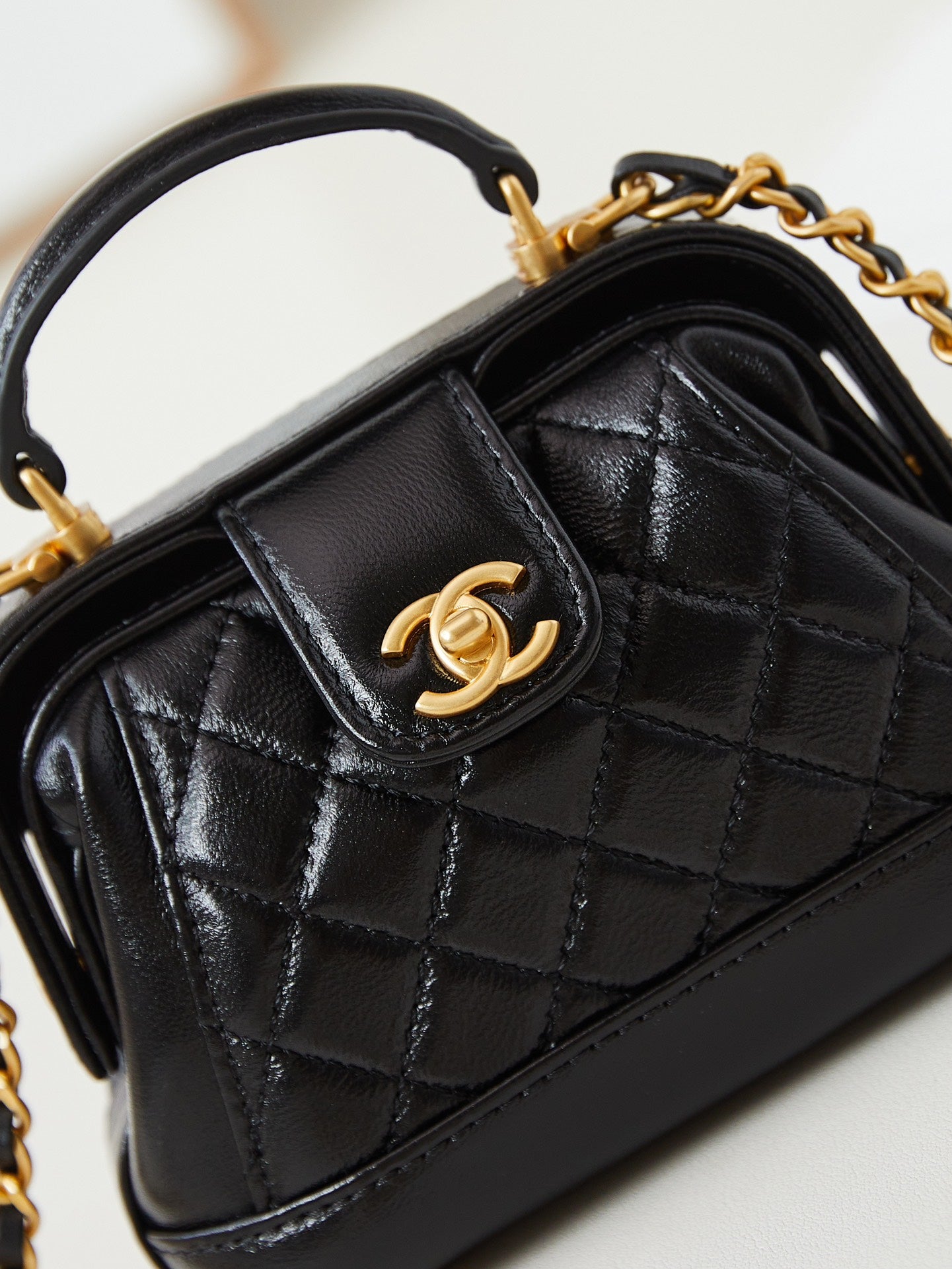 CC 24A Mini Top Handle 13cm Black Wax Leather Gold Hardware 238455