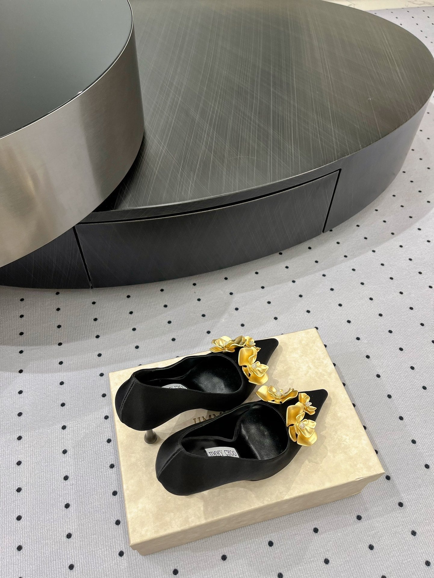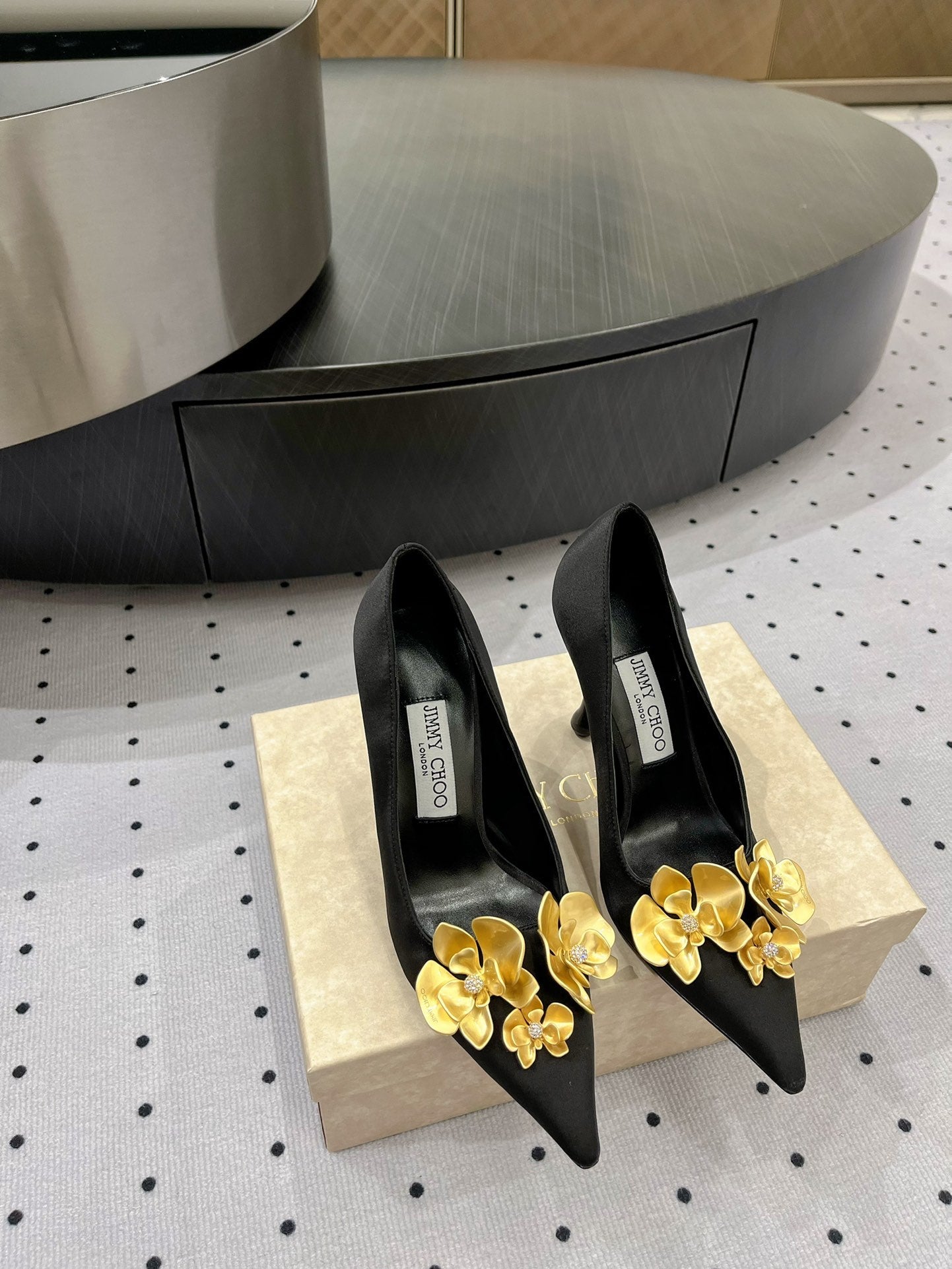 Jimmy Ixia 95 In Black Cowhide Pumps With Flowers 591587