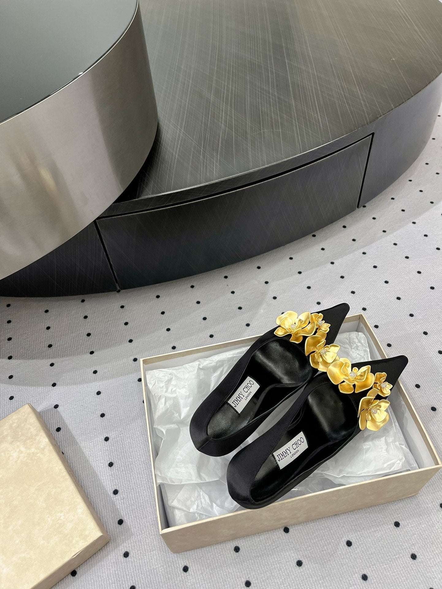 J'Adior Slingback Black Gold-tone Cotton Microbeads