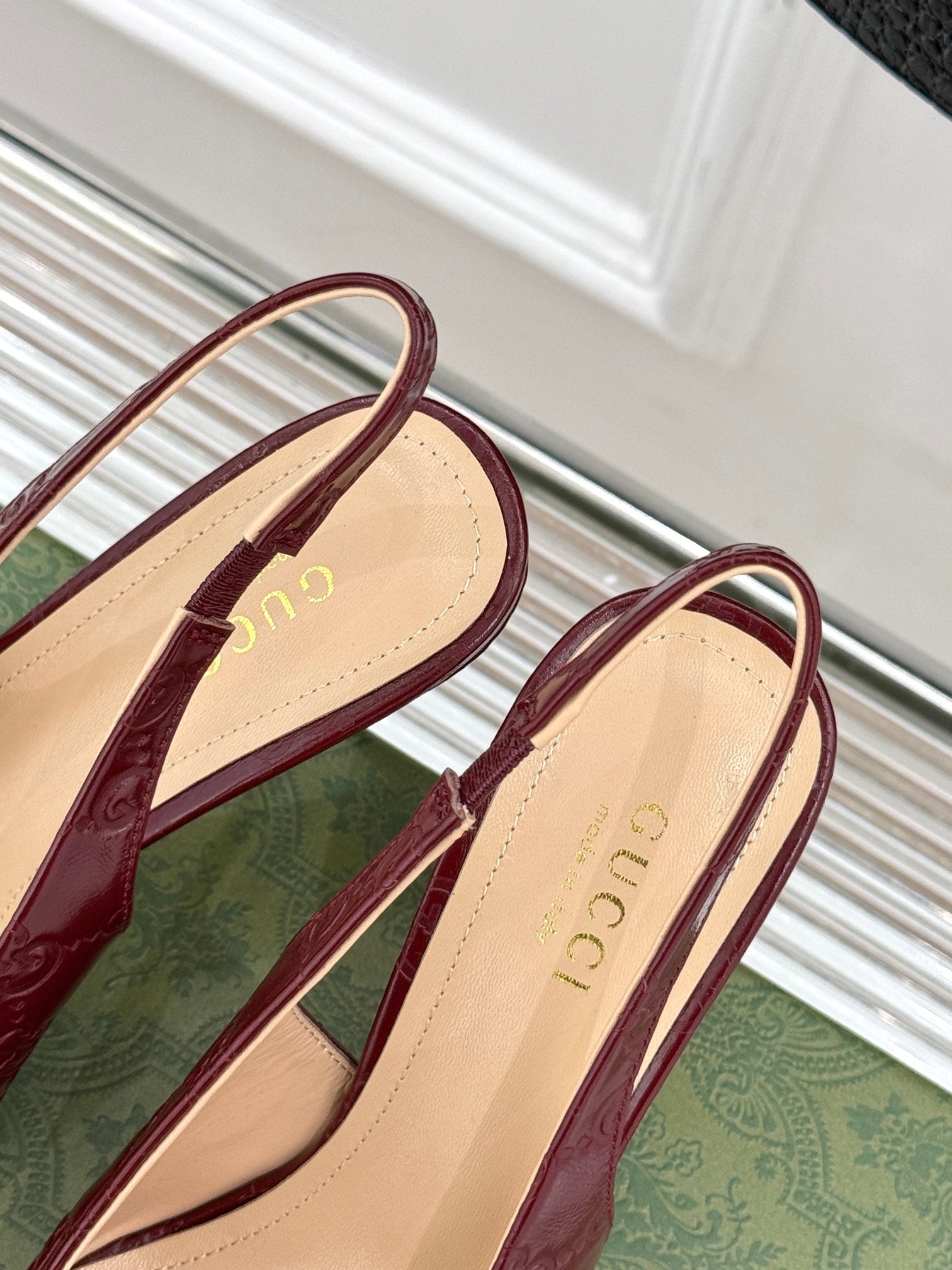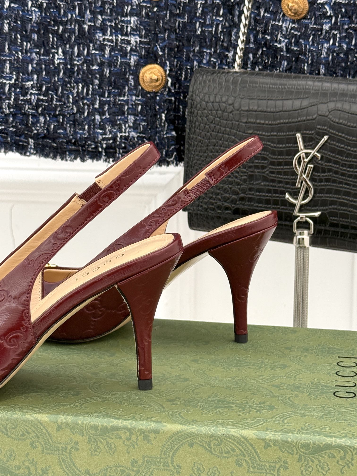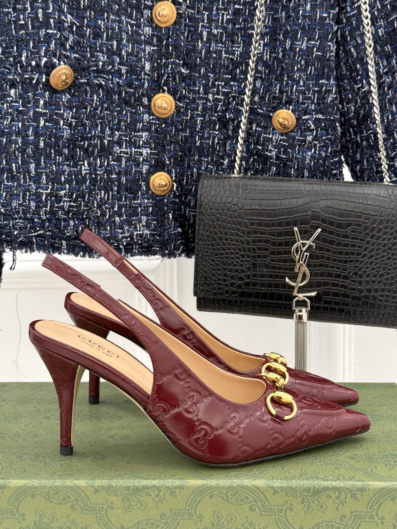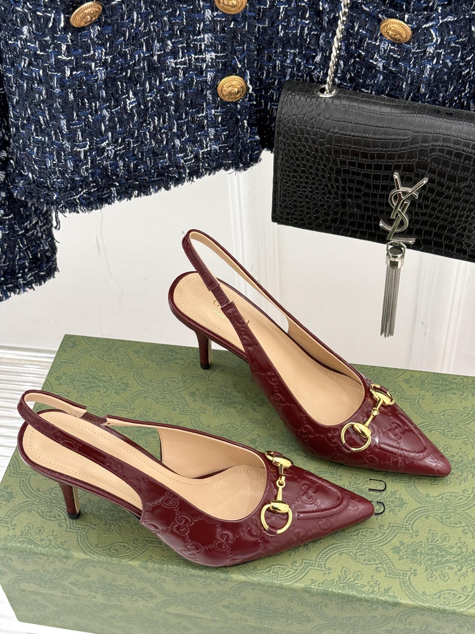 GG Horsebit Slingback 85MM Burgundy GG Leather Point Toe