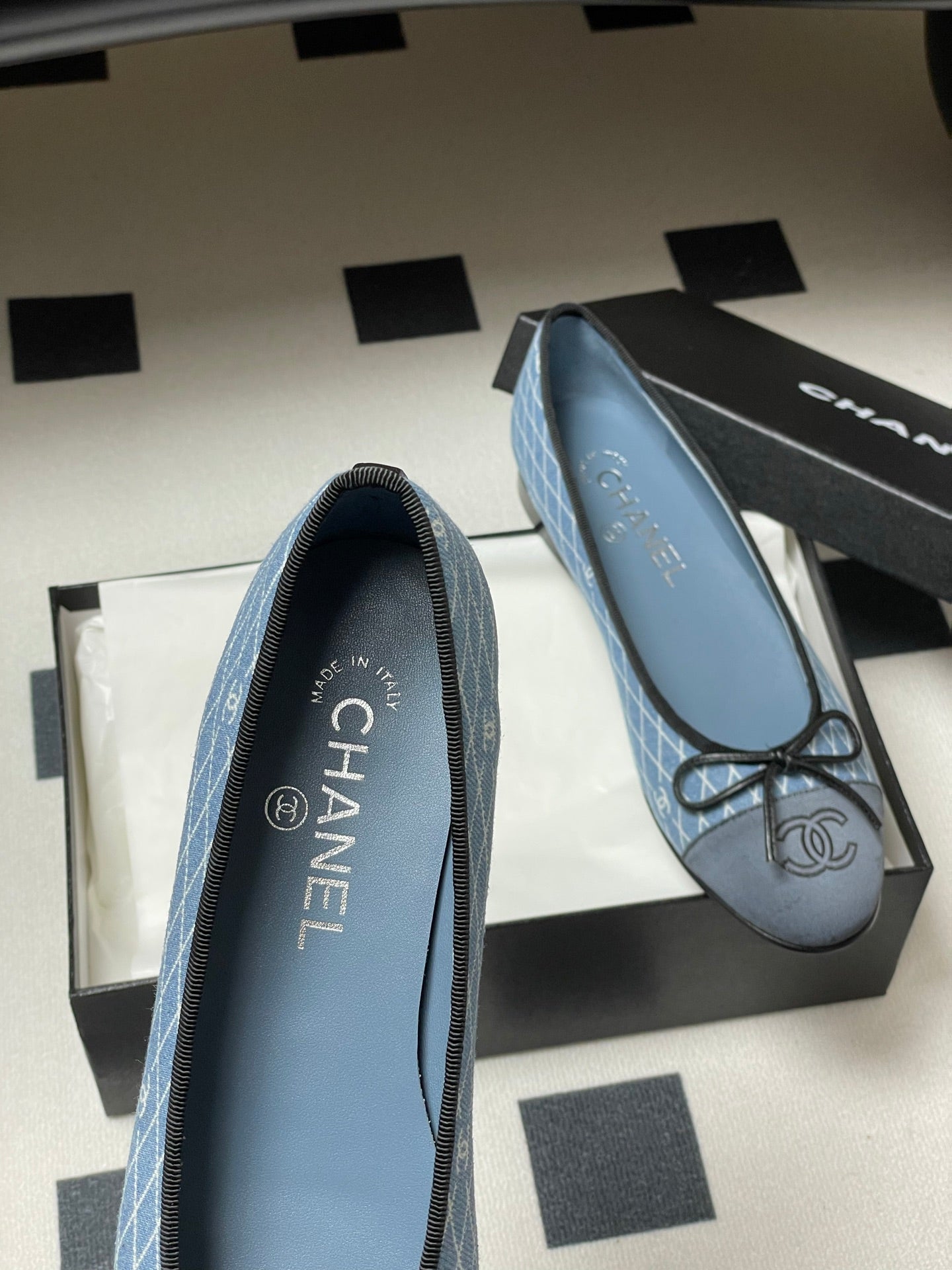 CC 25 Ballet Flat Dark Blue White Quilted Denim