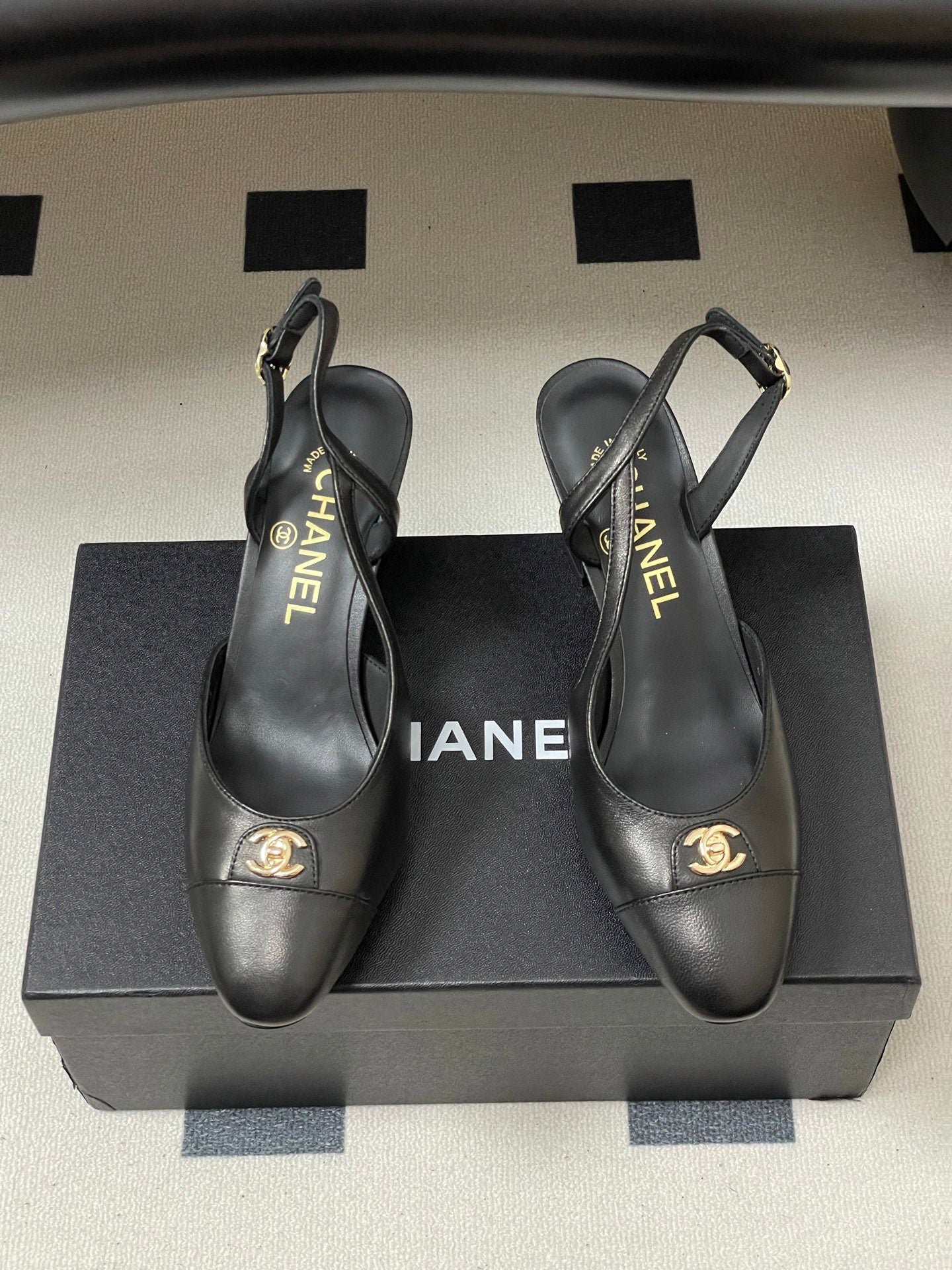 Chanel 25 Slingback 50mm Black Lambskin 473218